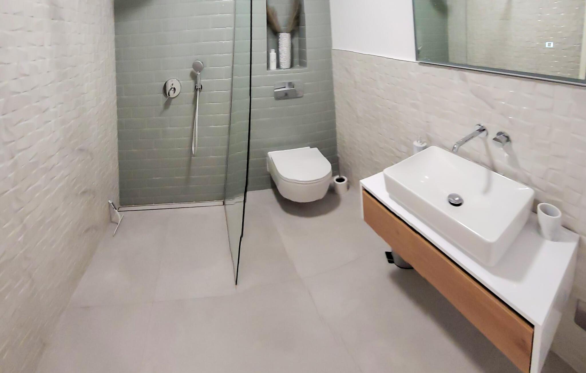 Badeværelse 8m2 (nr. 1) - WC. Varmt og koldt vand. Bruser og badekar