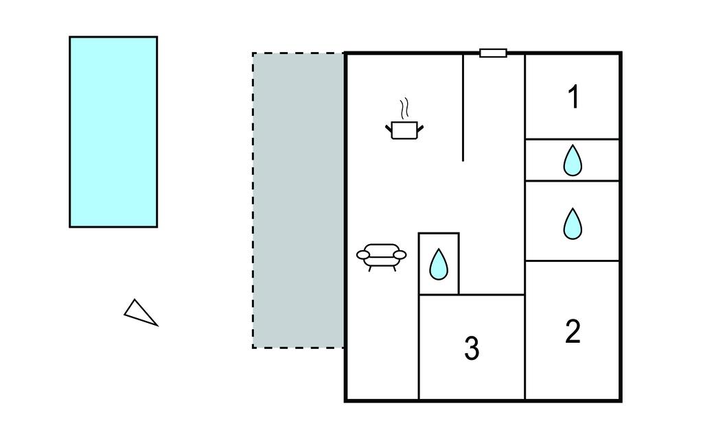 Opholdsstue/køkken 40m2 - 2 Sovepladser. (Sofa, madras eller lignende).