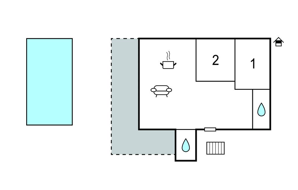 Opholdsstue/køkken 30m2 - 2 Sovepladser. (Sofa, madras eller lignende).