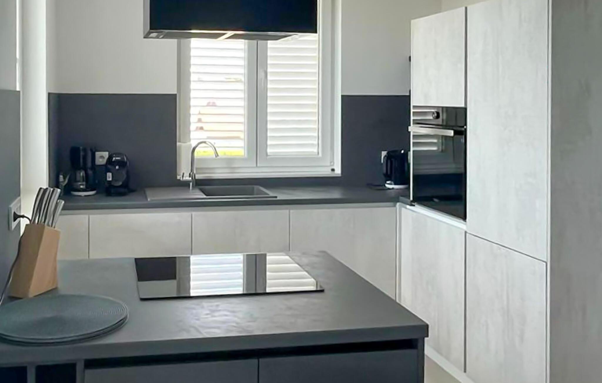 Denne lejlighed har en moderne, men komfortabel atmosfære. Diskrete farver og en nautisk blå farve komplementerer hinanden harmonisk, og et komfortabelt opholdsområde sikrer, at I føler jer hjemme. Tilbring afslappende timer med at nyde en filmaften sammen, tilbered friske måltider i det veludstyrede køkken eller find sammen omkring det runde spisebord til et kortspil med børnene.