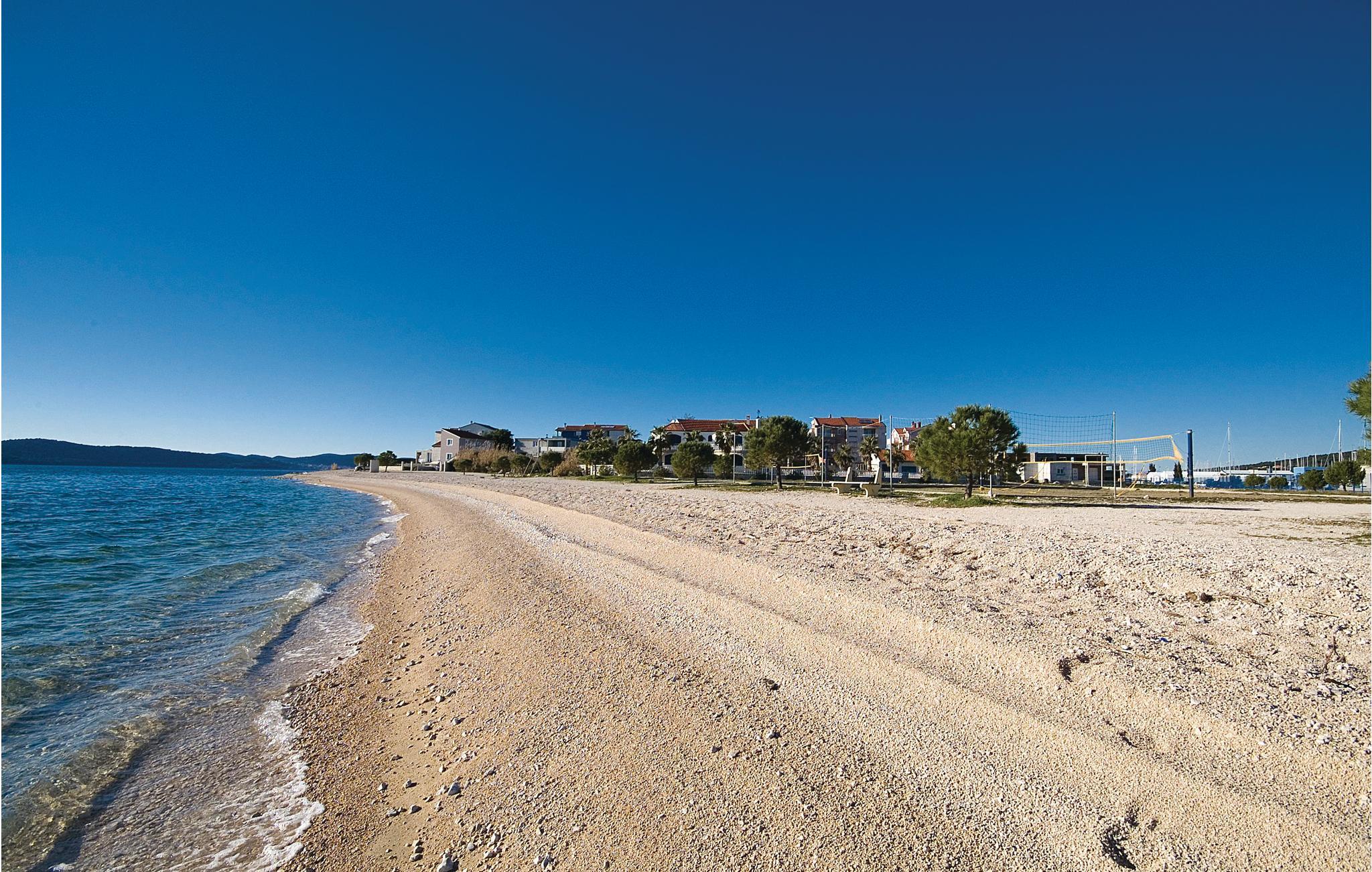 Disse dejlige ferielejligheder ligger ikke langt fra stranden med volleyballnet og en cafebar, hvor I kan spise morgenmad og hygge jer til langt ud på natten med kulørte drinks. Fra balkonen er der udsigt ud over det blinkende blå hav, og den største marina ved adriaterhavskysten. Det er kun fra CDZ243 der er panoramaudsigt. Ved siden af huset er der en fælles pool og en overdækket fælles siddeplads.