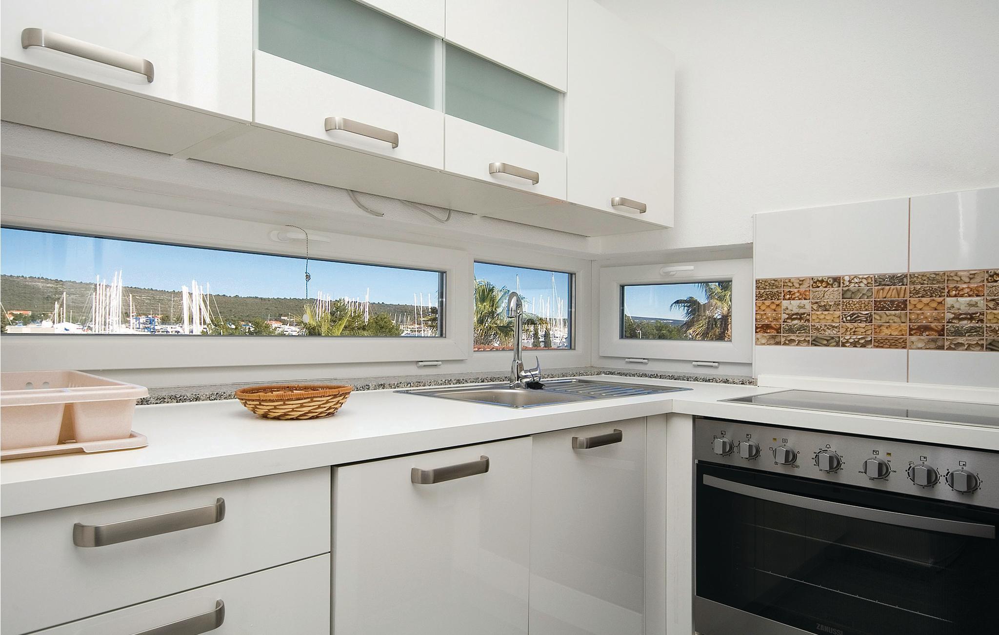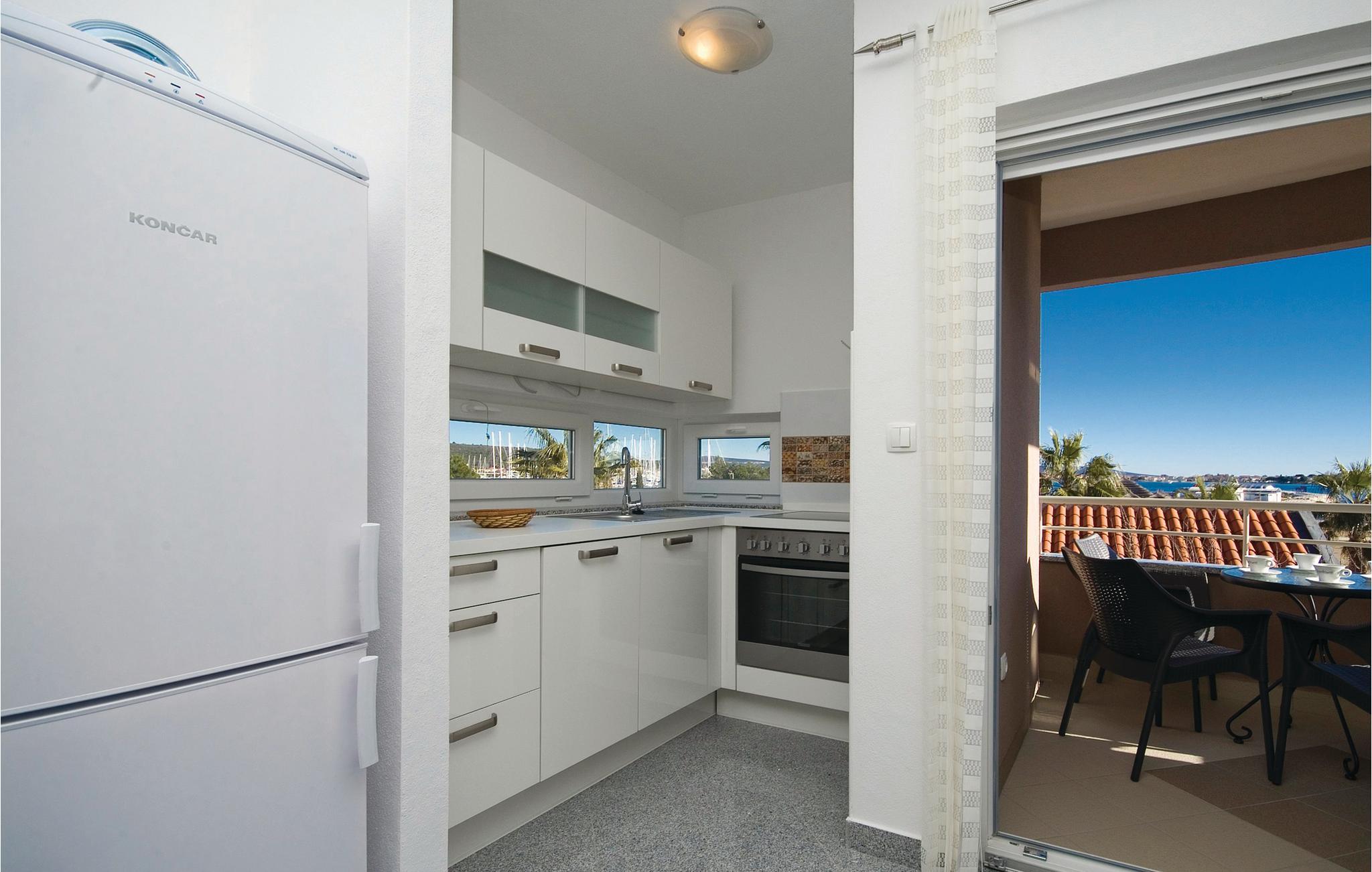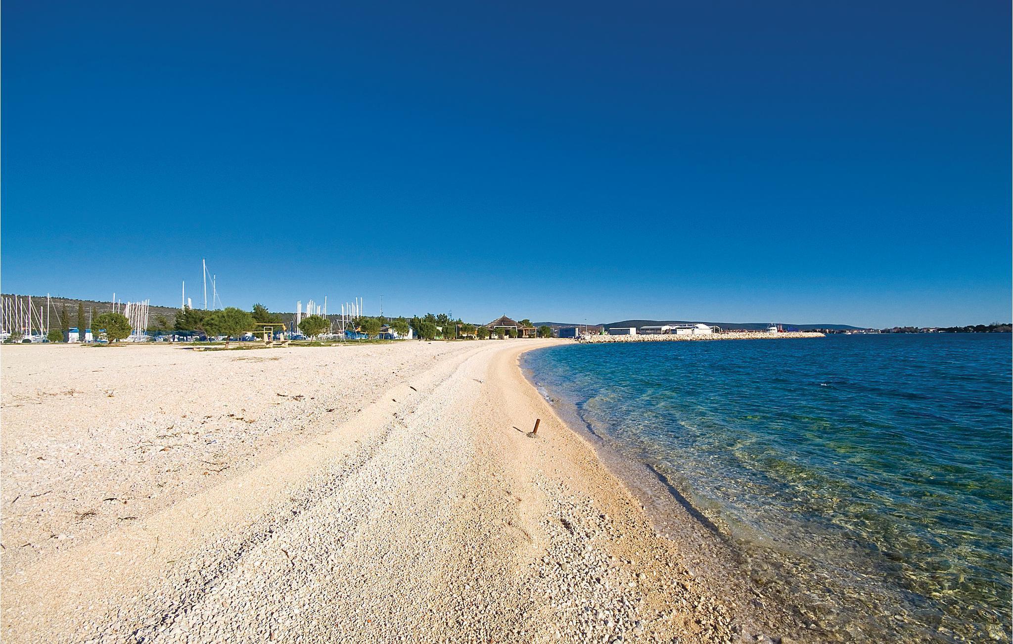 Disse dejlige ferielejligheder ligger ikke langt fra stranden med volleyballnet og en cafebar, hvor I kan spise morgenmad og hygge jer til langt ud på natten med kulørte drinks. Fra balkonen er der udsigt ud over det blinkende blå hav, og den største marina ved adriaterhavskysten. Det er kun fra CDZ243 der er panoramaudsigt. Ved siden af huset er der en fælles pool og en overdækket fælles siddeplads.