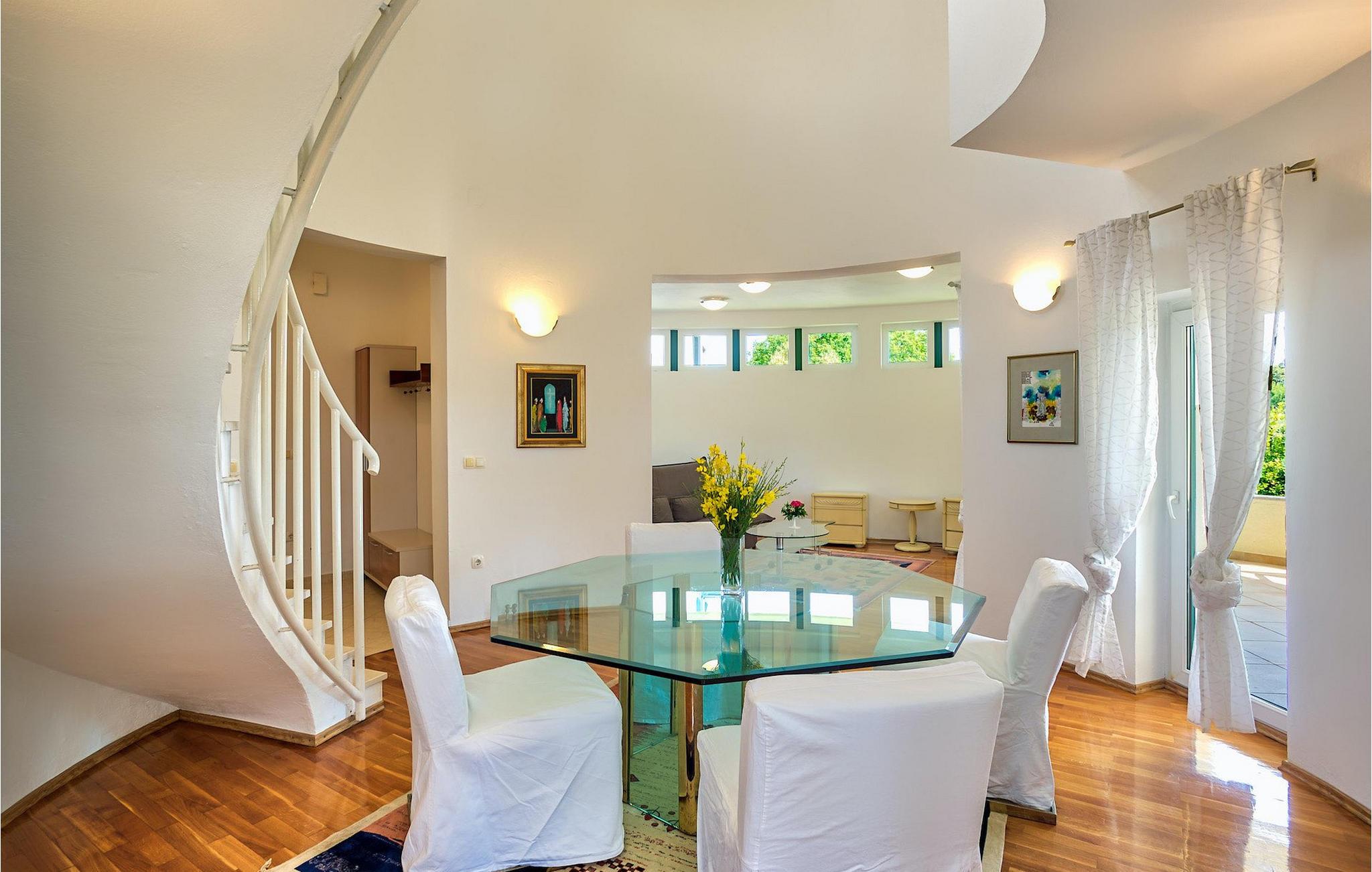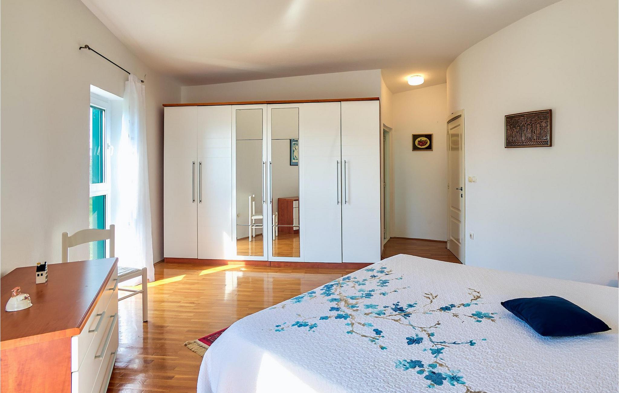 Denne 3 værelses villa er fantastisk beliggende kun 50 meter fra stranden - der er en bådplads, hvis du vil ankomme med din båd - og er virkelig et tilflugtssted for dem, der leder efter fred og ro. Beliggende i Bibinje, 5 km fra Zadar, perfekt placeret til at nå denne romantiske by og andre steder med kultur- og naturarv. Villaen tilbyder dig en luksuriøs indkvarteringsoplevelse med et højt niveau af privatliv, ideel til familier, par og små grupper. Med mere end 180m2 fordelt på to etager og 3 soveværelser, kan dette nye og moderne hus rumme 8 gæster. Køkken, badeværelse, vaskerum, spiseplads og opholdsstue ligger i stueetagen med en dejlig udsigt til haven. Køkkenet er udstyret med blandt andet el-komfur, ovn, køleskab, mikroovn og opvaskemaskine. På første sal er der tre soveværelser, ledsaget af to badeværelser med bruser. For fuldstændig privatliv og børns sikkerhed er haven omgivet af en hæk og et hegn. Huset er udstyret med privat parkeringsplads til 3 biler. Villa Jadranka ligger i Bibinje, 5 kilometer syd for Zadar til Biograd. Med næsten 300 solskinsdage om året er denne region en destination værdsat af turister fra hele verden. Villaens beliggenhed tilbyder en perfekt balance mellem fred og privat nydelse væk fra byliv og turistmængder, matchet med meget rimelige afstande til alle større dalmatiske byer, såvel som dets lokalsamfund, naturlige og kulturelle skønhed. Udover kulturelle og historiske skønheder byder Dalmatien på en unik gastrooplevelse, velkendt i denne del af Europa. Hjemmelavet dalmatisk prosciutto (pršut) og blå blåmuslinger fra Middelhavet er blot nogle få af de mange lækre gastro-fornøjelser, som denne del af Dalmatien kan byde på for en ægte oplevelse af hjemmelavet middelhavskøkken. Denne del af Dalmatien er også hjemsted for et par af de smukkeste national- og naturparker i denne del af Europa. Her er 3 naturparker - Telascica, Northern Velebit og Vransko Lake samt 5 nationalparker - Paklenica, Plitvice, Kornati, Krka og Velebit, der rangerer Zadar og dens omgivelser på toppen af det kroatiske turisttilbud.