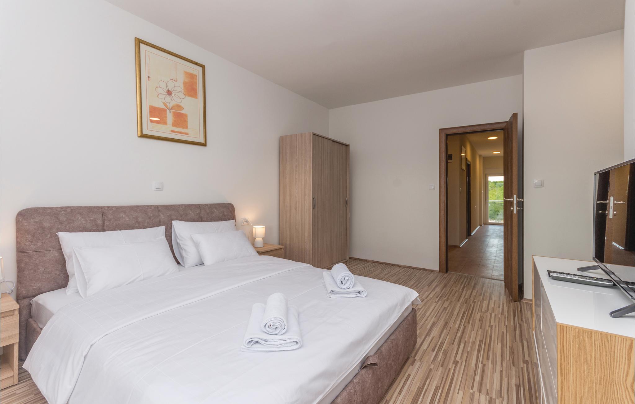 Dette rummelige familiehus ligger i landsbyen Bilišane i nærheden af Obrovac og er ideelt til en større familie eller vennegrupperne, der rejser sammen, da det har plads til hele 12 personer. De kan boltre sig med seks soveværelser, syv badeværelser, et køkken, en spisestue og et badeværelse, stue og en rummelig have med privat pool. Fra stueetagen og op til første sal er der indvendige trapper. Den mindste loftshøjde på loftet er 160 cm. Også i det udendørs område er dette hus meget veludstyret med 6 komfortable liggestole, hvor sommerkuløren kan komme i. Husets samlede boligareal er 262 m².
