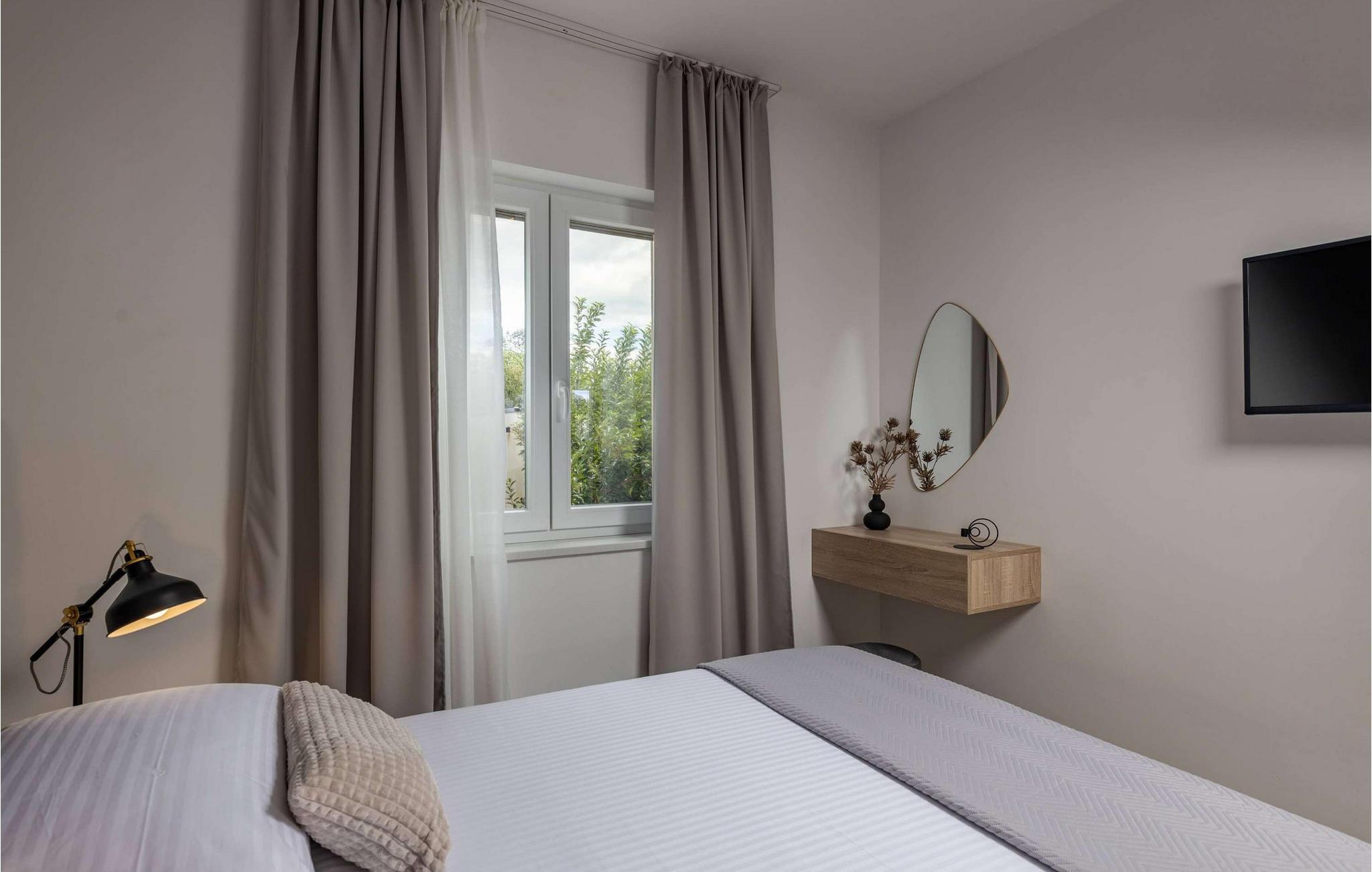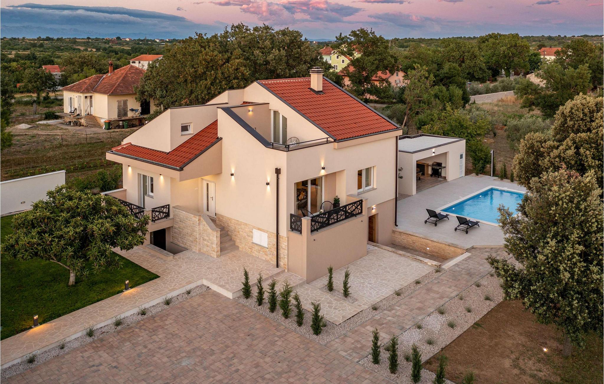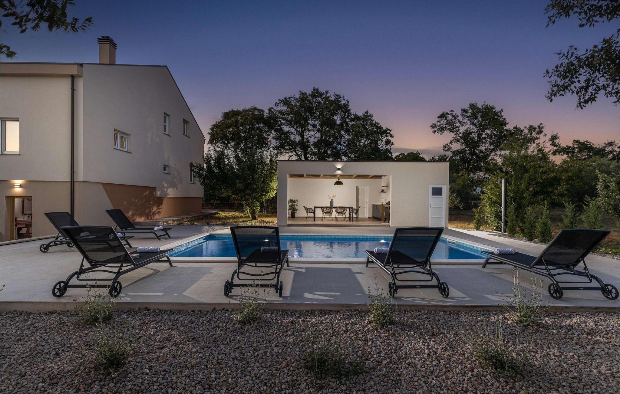 Den smukke Villa Calma Briševo ligger nær byen Zadar og har sine stilfulde og møbler af høj kvalitet. Nyd den hyggelige atmosfære med harmoniske måltider, skab kulinariske højdepunkter under afslappede aftener med madlavning, og slå jer ned godt til rette i den elegante sofa til stimulerende samtaler eller en spilleaften.