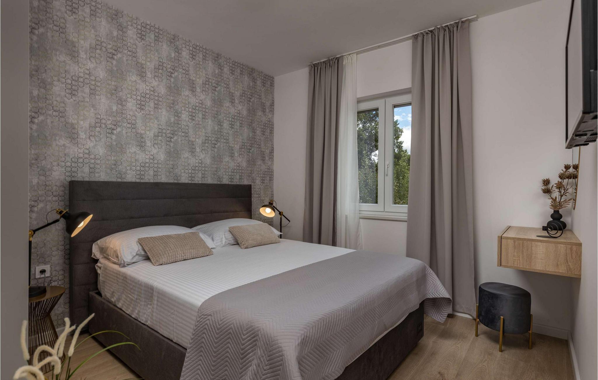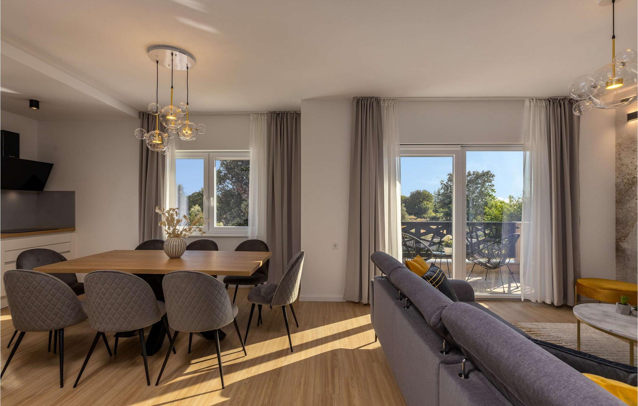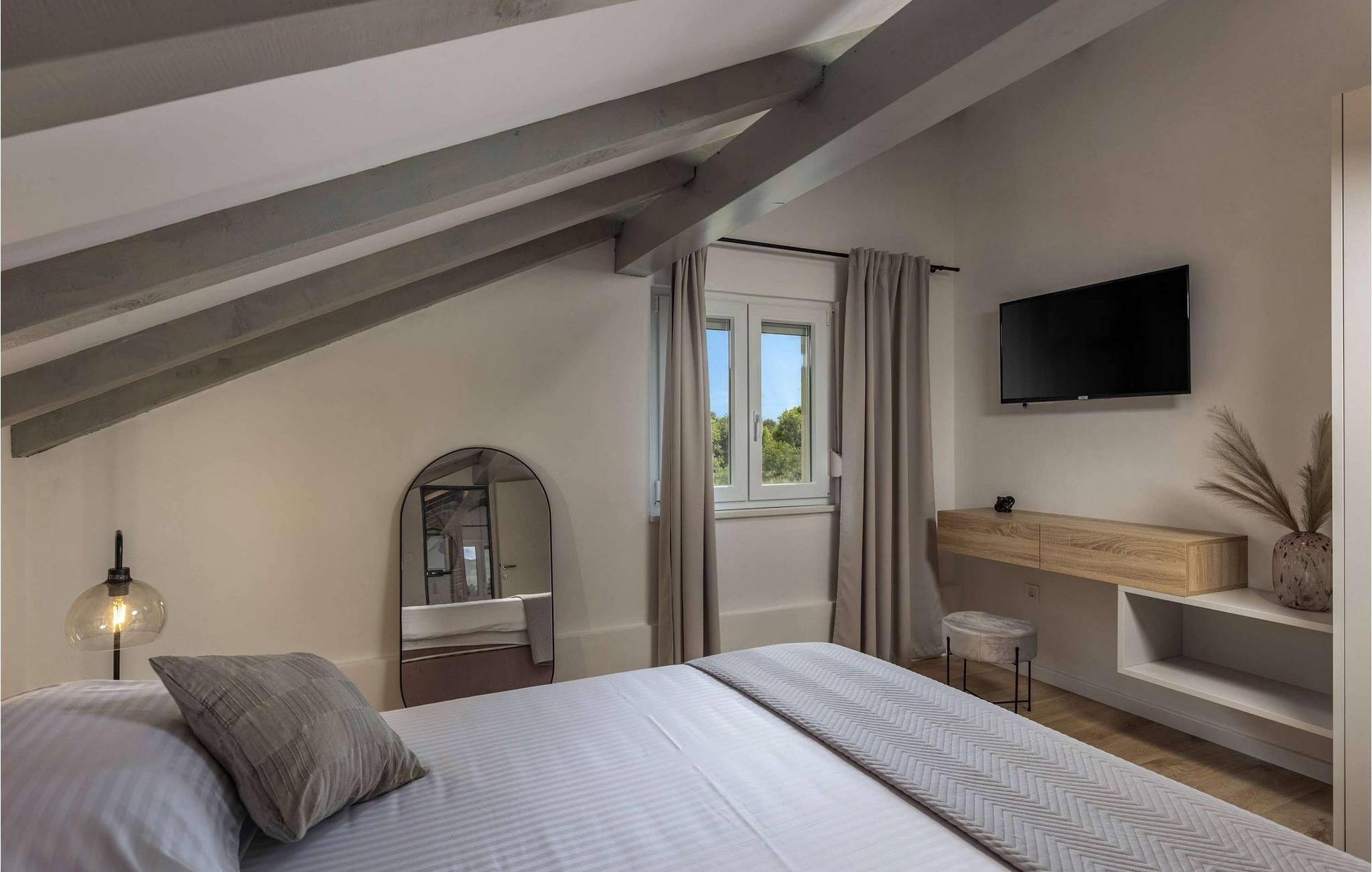 Den smukke Villa Calma Briševo ligger nær byen Zadar og har sine stilfulde og møbler af høj kvalitet. Nyd den hyggelige atmosfære med harmoniske måltider, skab kulinariske højdepunkter under afslappede aftener med madlavning, og slå jer ned godt til rette i den elegante sofa til stimulerende samtaler eller en spilleaften.