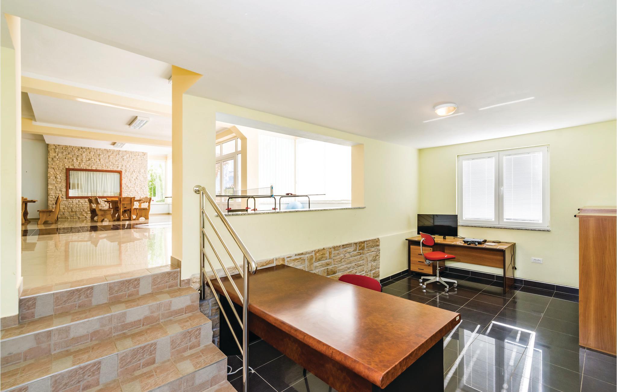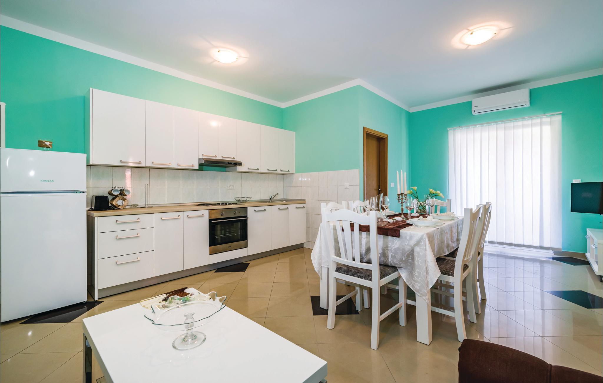 Her inviterer et komfortabelt feriehus med dejlig have og pool på en herlig ferie ved Middelhavet med familie og venner. Nyd udsigten til havet fra de øvre terrasser og forfrisk jer i poolen på varme sommerdage. I aktivitetsrummet har I gode muligheder for at være aktive, og i kan tilberede lækre måltider ved pejsen. Feriehuset består af fire særskilte lejligheder med eget badeværelse og stue med køkken. I kan tage bilen til de nærmeste strande, og besøg også kystbyerne Sukošan og Zadar, hvor der venter en bred vifte af strande, sommerarrangementer og restauranter. I byen Debeljak er der en oplevelsespark til eventyrlige gæster. I nærheden er der en offentlig børnelegeplads, børnehave samt gode lokale veje.