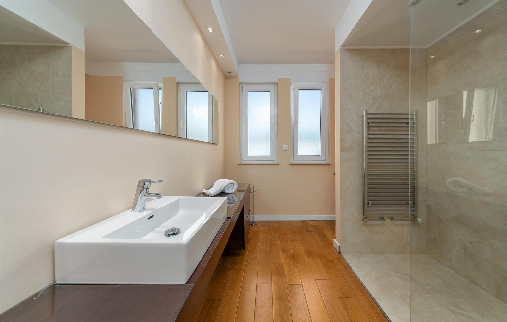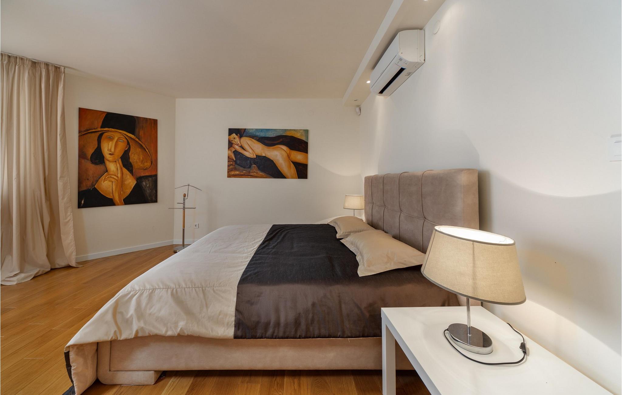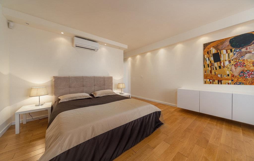 Tilbring en uforglemmelig ferie i dette luksuriøse feriehus med pool nær havet. Inde i Villa Roko vil I blive mødt af en lys atmosfære, der er særligt rummelig takket være store vinduer og lyse farver. Elegante lysekroner og moderne kunstværker tilføjer stilfulde detaljer og giver opholdsstuen en sofistikeret, næsten gallerilignende atmosfære. Gør jer komfortable i de komfortable sofaer, nyd lange samtaler ved spisebordet eller nyd landskabet fra chaiselongen. Fælles madlavning i det åbne køkken bliver en hyggelig oplevelse, inden I afslutter aftenen i afslappet selskab. Nyd middelhavslivet i al sin rigdom uden for Villa Roko. Svøm baner i den forfriskende pool, slap af på liggestolene med en betagende udsigt over de bølgende bakker eller afslut dagen med et glas vin i skyggen af den overdækkede terrasse. Det rummelige grillområde i haven er perfekt til fælles aftener med frisktilberedte specialiteter, mens den rene luft og roen sikrer ren afslapning. Omgivet af natur, men alligevel udstyret med alle faciliteter, tilbyder denne beliggenhed de ideelle rammer for uforglemmelige udendørs ferieøjeblikke. Debeljak er en fredelig, men perfekt base for at udforske Dalmatien. Omgivet af middelhavsnatur er maleriske byer og betagende nationalparker let tilgængelige. Nærliggende landsbyer og historiske byer venter jer med charmerende gyder, traditionelle taverner og lokale markeder fulde af kulinariske opdagelser. Kystbyerne Sukošan og Zadar lægger op til aftenudflugter med deres pulserende blanding af førsteklasses restauranter, stilfulde barer, livlige begivenheder og kulturskatte. Og efter en dag fyldt med eventyr finder I fred og ro i selve Debeljak til afslappende timer.