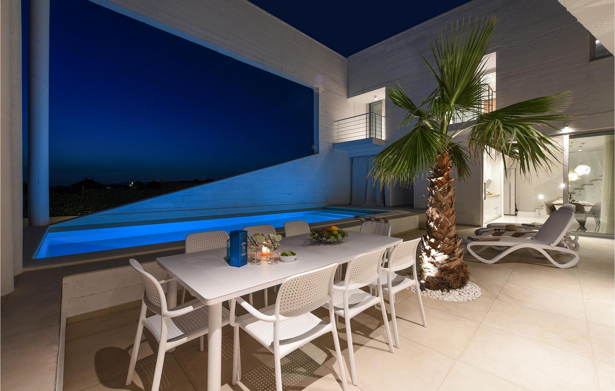 Den moderne og elegante Villa Dante byder jer velkommen i en rolig og solrig beliggenhed. Dets rummelige interiør af høj kvalitet er noget særligt med stilfuld enkelhed, perfekt til at nyde hyggelige aftener med madlavning, harmoniske måltider og afslappede samtaler over et glas vin. find sammen til sjove spilleaftener i den hyggelige stue eller omkring det indbydende spisebord, og lad de yngre gæster nyde PlayStation.