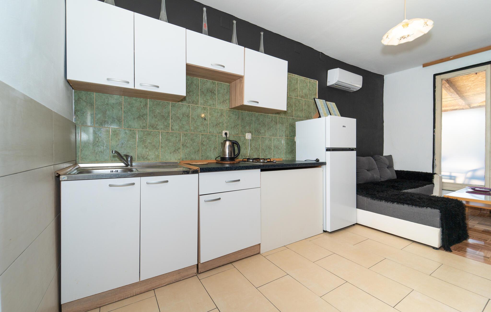 Denne lejlighed har alt, hvad I skal bruge til en afslappende strandferie i Kroatien. Nyd en let morgenmad med familien og planlæg dagens aktiviteter. Jeres skyggefulde terrasse giver jer de ideelle rammer.