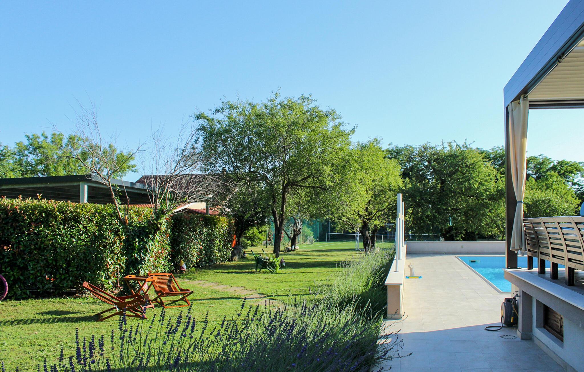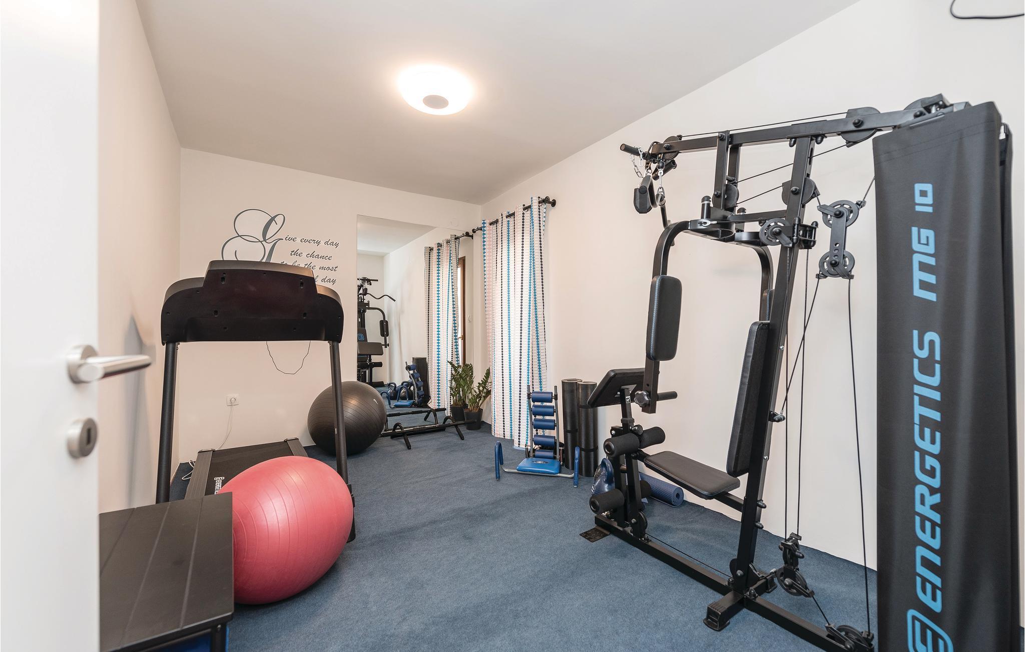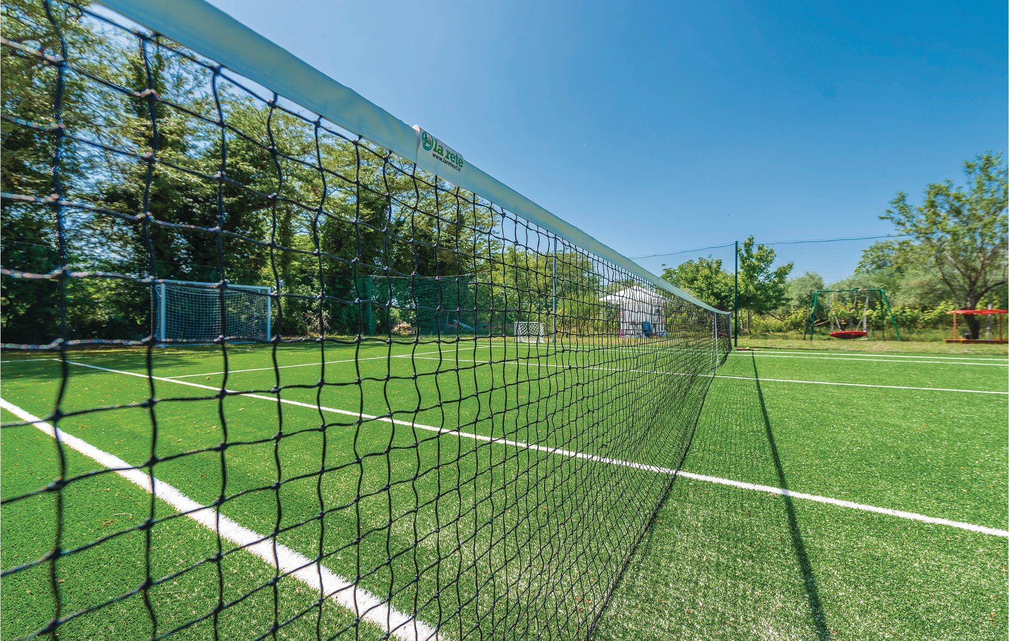 Dette komfortable feriehus til otte personer ligger i det grønne opland omkring Donji Zemunik på en stor privat grund, perfekt til jer, der vil bo luksuøst og helt ugenert. På grund af de mange muligheder for at dyrke sport, oplagt til aktive ferierende. Her er en multisportsplads hvor I kan spille tennis, volleyball, fodbold og badminton. Ikke nok med det, der er også et fitness og fritidsrum med billard, dart og bordfodbold. Her er også legetøj til jeres børn. I kan også glæde jer til jeres helt private pool, whirlpool og en sauna, som prikken over i’et. Soveværelset på øverste etage med skrå vægge, er oplagt til børn. Det tager et kvarter at køre til Zadar med de moderne seværdigheder: Havorgelet og Hilsen til solen.