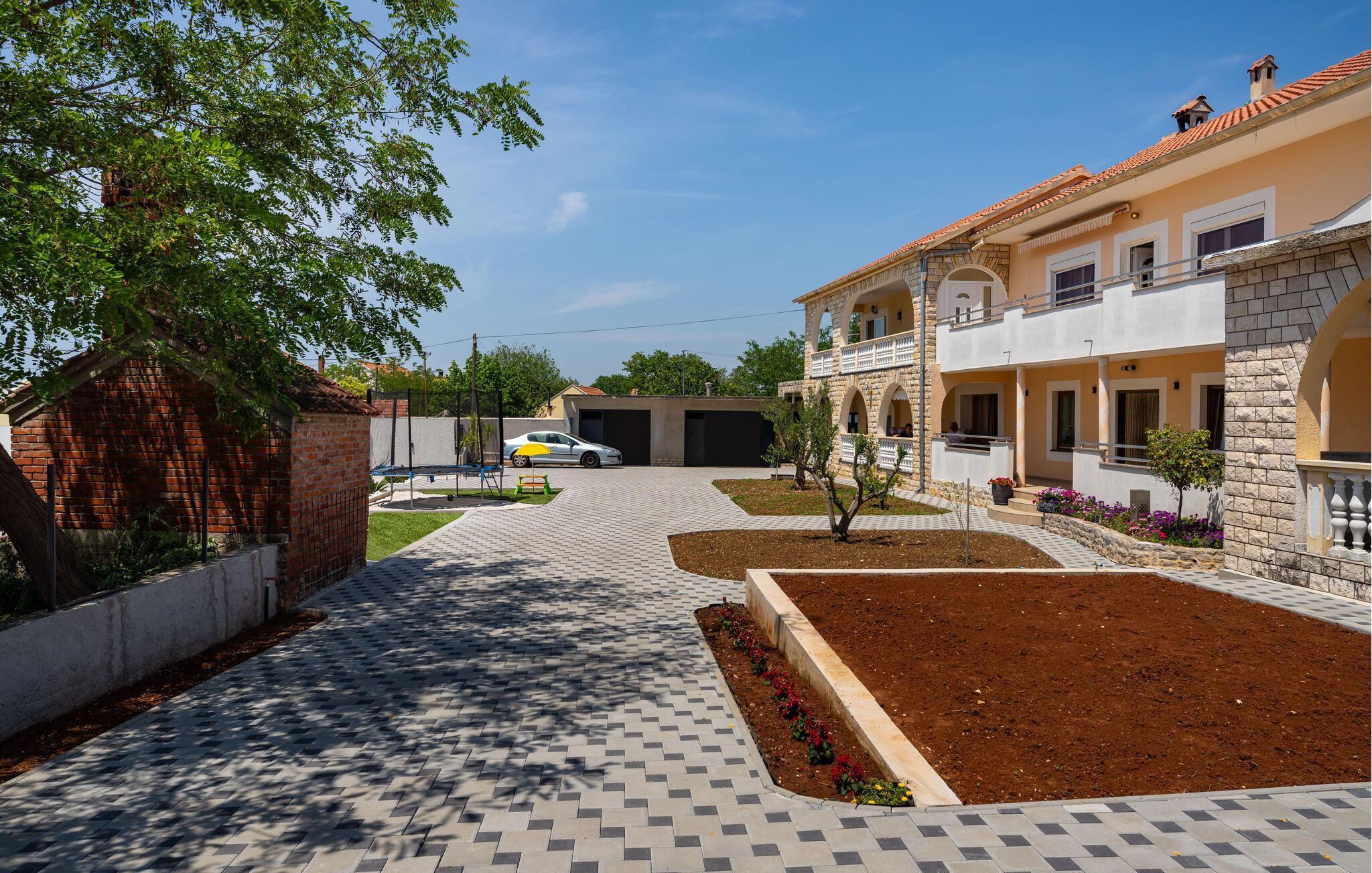 Udforsk Zadar og den hyggelige by Galovac, en region fyldt med aktiviteter og udflugtsmuligheder. Udforsk det maleriske landskab på vandreture eller cykelture gennem grønne enge og idylliske landsbyer. Besøg historiske seværdigheder som kirken Sv. Martin og det arkæologiske museum i Zadar. Naturentusiaster kan tage på udflugter til naturparken Vrana Sø eller til kysten ved Nin. Nyd lokale specialiteter på hyggelige restauranter, og oplev de lokales gæstfrihed.