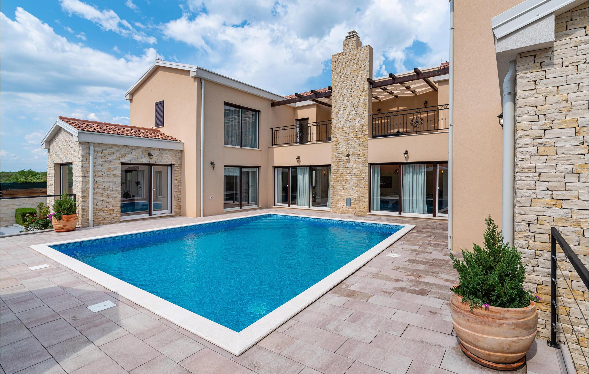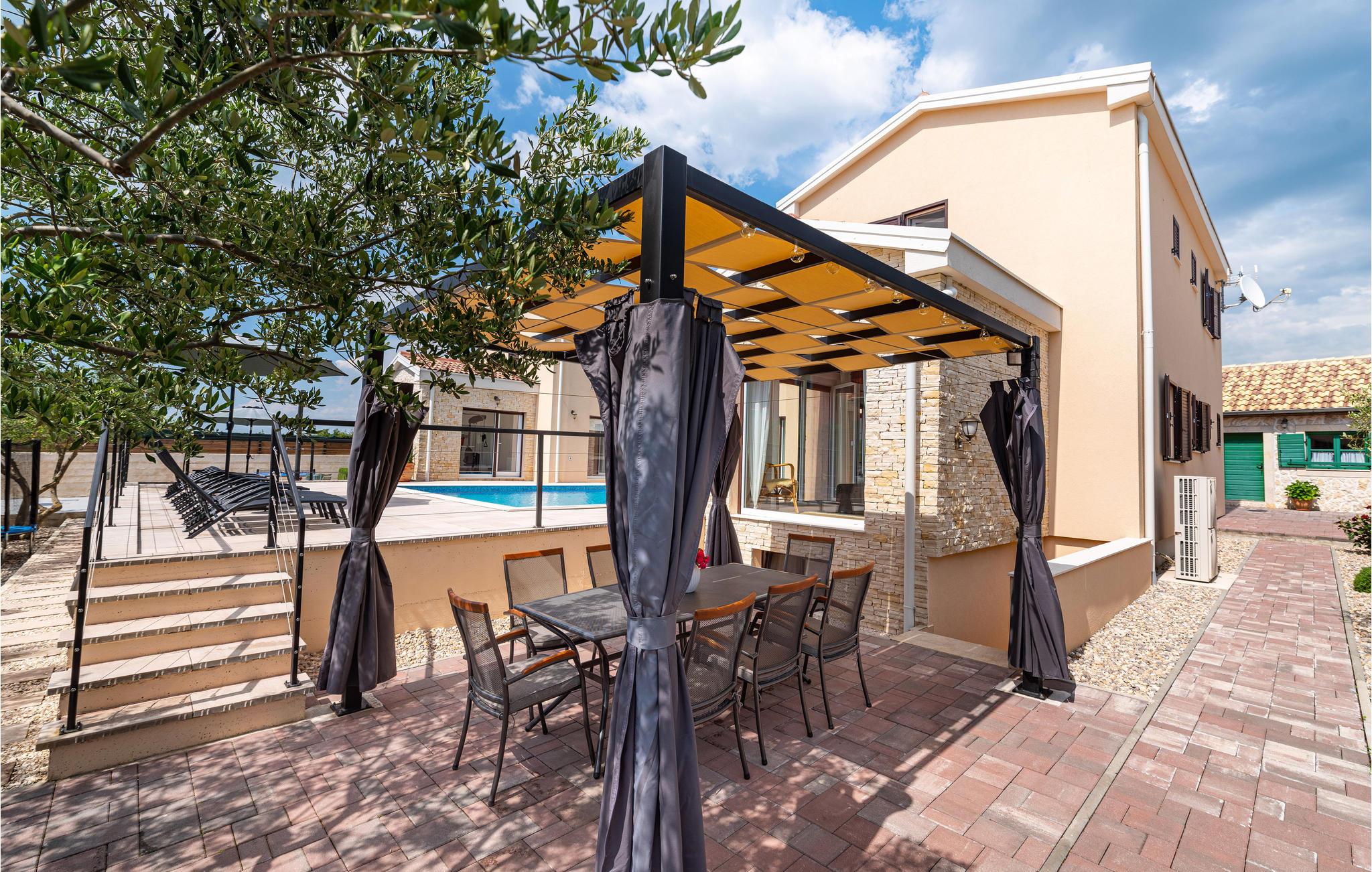 Tilbring din ferie i dette smukke og behagelige sommerhus med sin egen pool. Beboelsesområdet er fordelt over stueetagen og første sal.