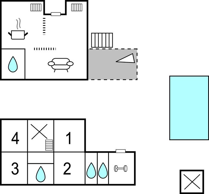 Feriedrømmene for hele familien vil gå i opfyldelse i dette børnevenlige sommerhus. I stueetagen er der 4 soveværelser, 2 badeværelser, et toilet og et fitnessrum, så I kan holde jer i form på ferien. En intern trappe fører til 1. sal, hvor der er en stue med spisestue og køkken samt et badeværelse. Indretningen er moderne med komfortable møbler.
