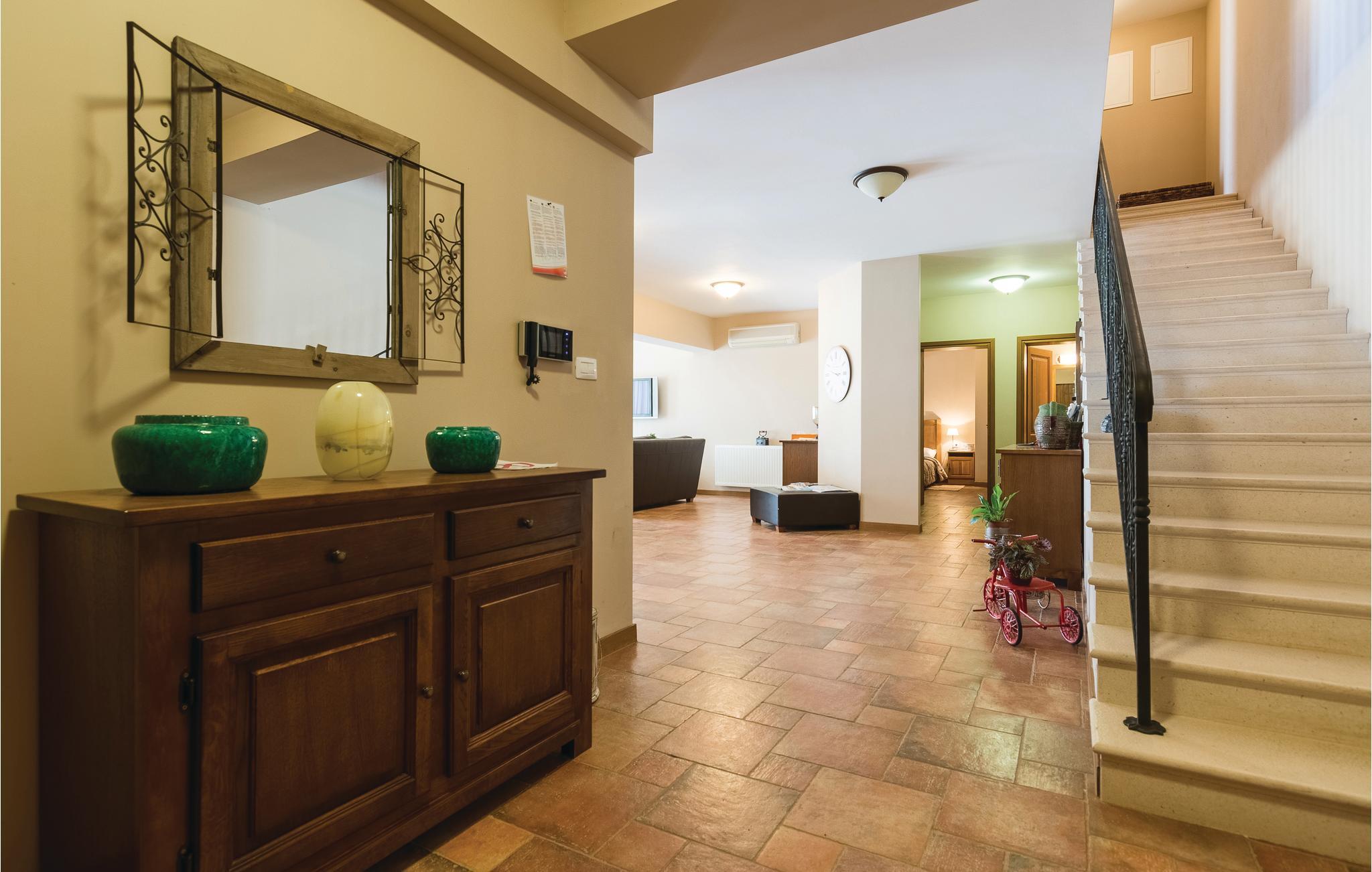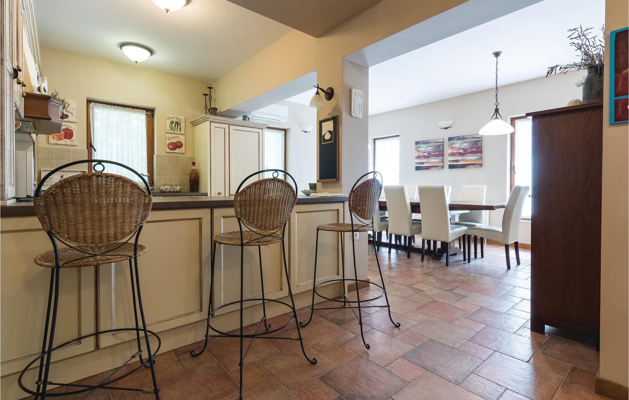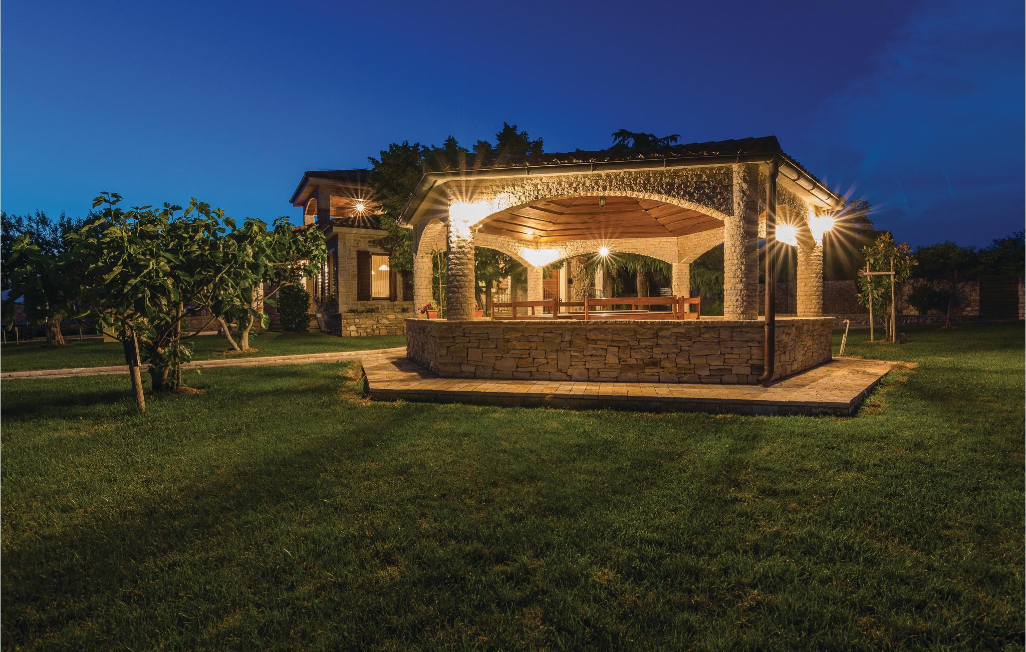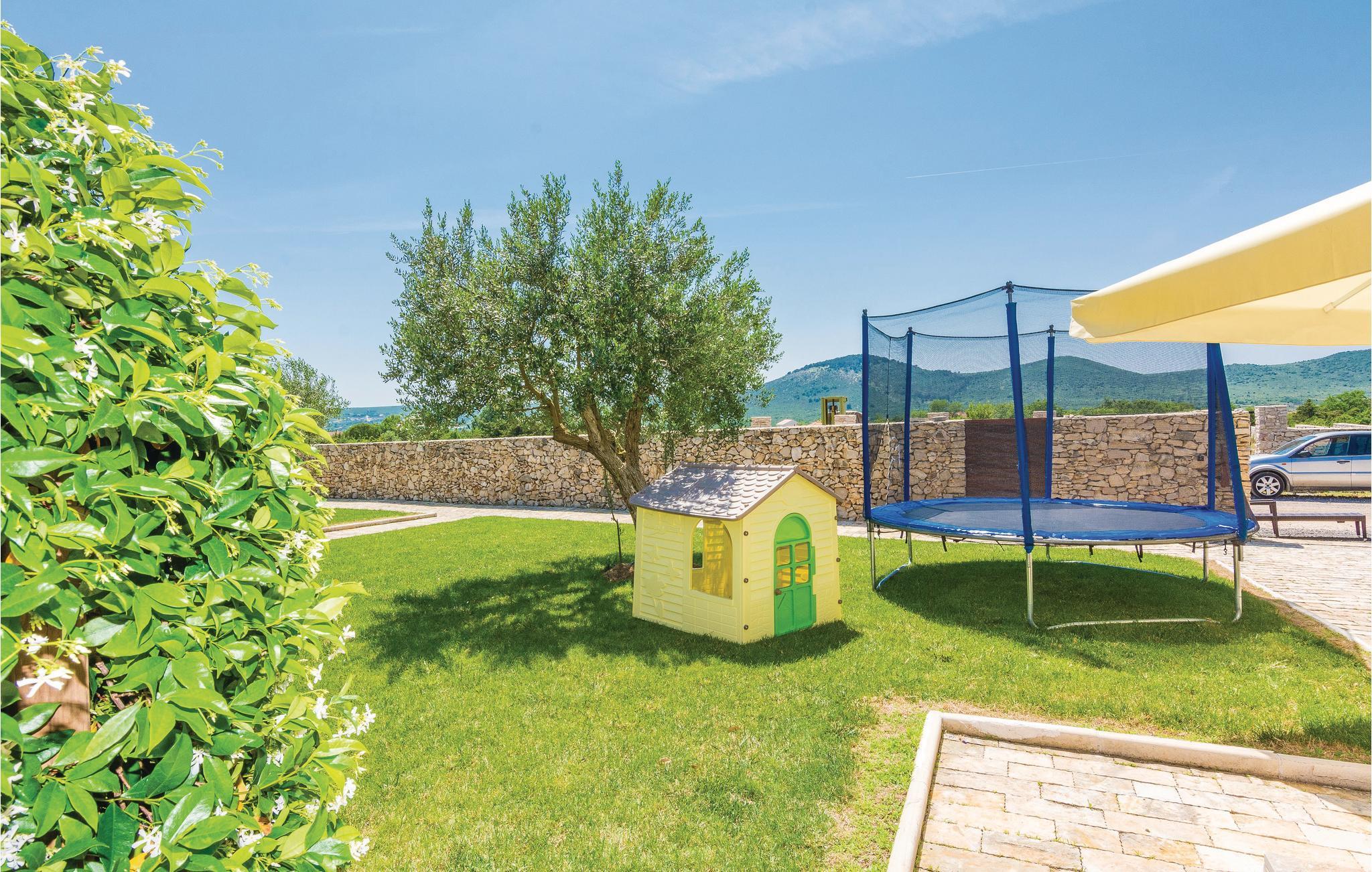 På en stor grund i Gorica, i nærheden af Zadar, ligger dette smukke og luksuriøse stenhus. I stueetagen er der en stor stue med spisestue, fuld udstyret køkken, et soveværelse og et badeværelse. For enden af gangen er der et vaskerum, hvor der er adgang til altanen. Fra stuen kan I gå ud til den overdækkede terrasse og swimmingpoolen. Her kan I slappe af og nyde en god bog, eller tage en forfriskende svømmetur i swimmingpoolen. Ovenpå er der yderligere 3 soveværelser med klimaanlæg og eget bad. I haven står en pavillon, hvor I kan tilbringe hyggelige og afslappende timer sammen. Familiens yngste kan trygt lege på plænerne der omgiver huset. De sidste 300 m af tilkørslen til huset, er ikke asfalteret.