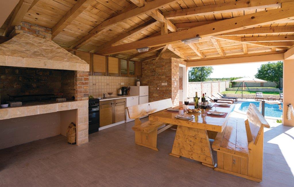 De to etager er forbundet med en ydertrappe. Feriehuset er oplagt til afslapning og underholdning i løbet af ferien. Værelserne er omhyggeligt og passende udstyret. Udenfor venter der en pool samt en flot, overdækket terrasse med udendørs køkken og grill. Her kan I tilbringe ferieøjeblikke med at ligge i solen, svømme i poolen eller tilberede lækre retter på grillen.