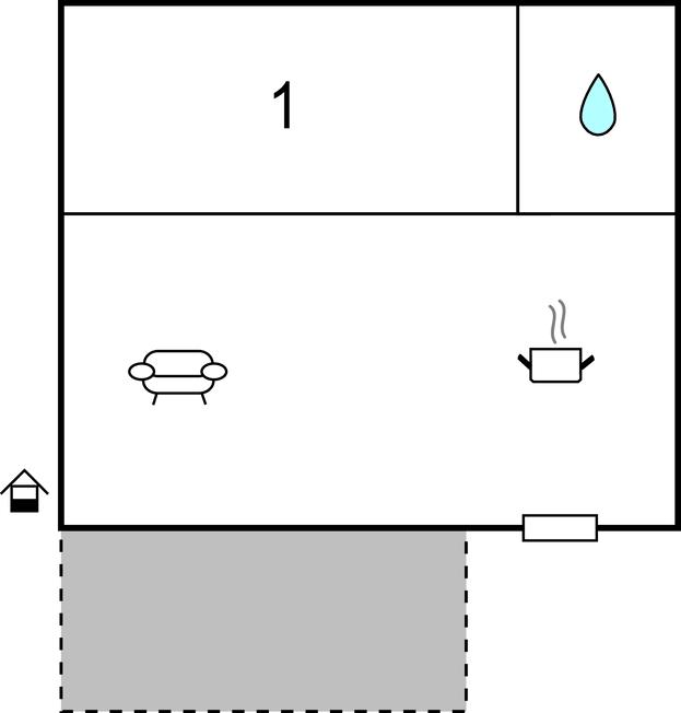 Opholdsstue/køkken 15m2 - 2 Sovepladser. (Sofa, madras eller lignende).