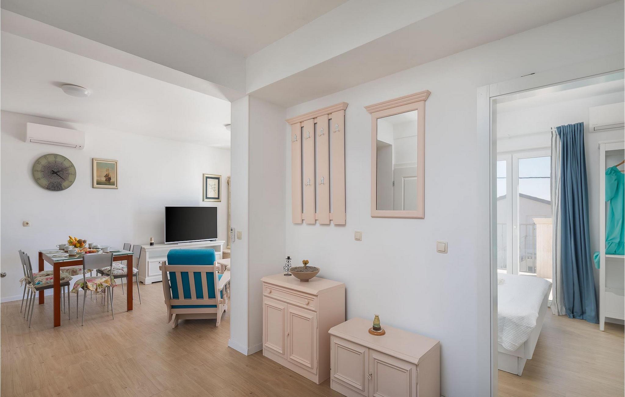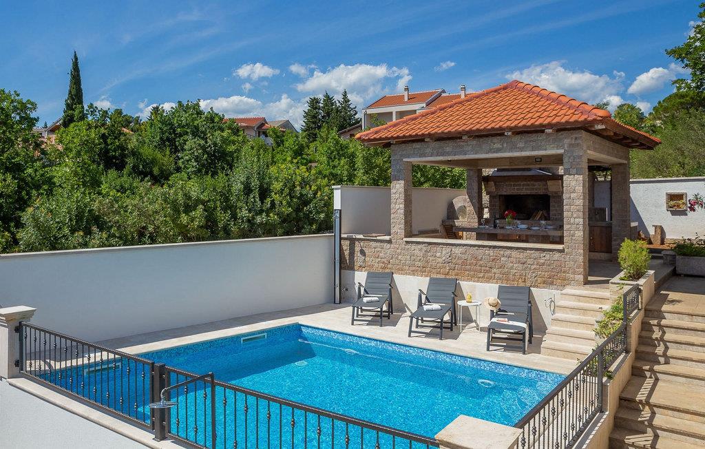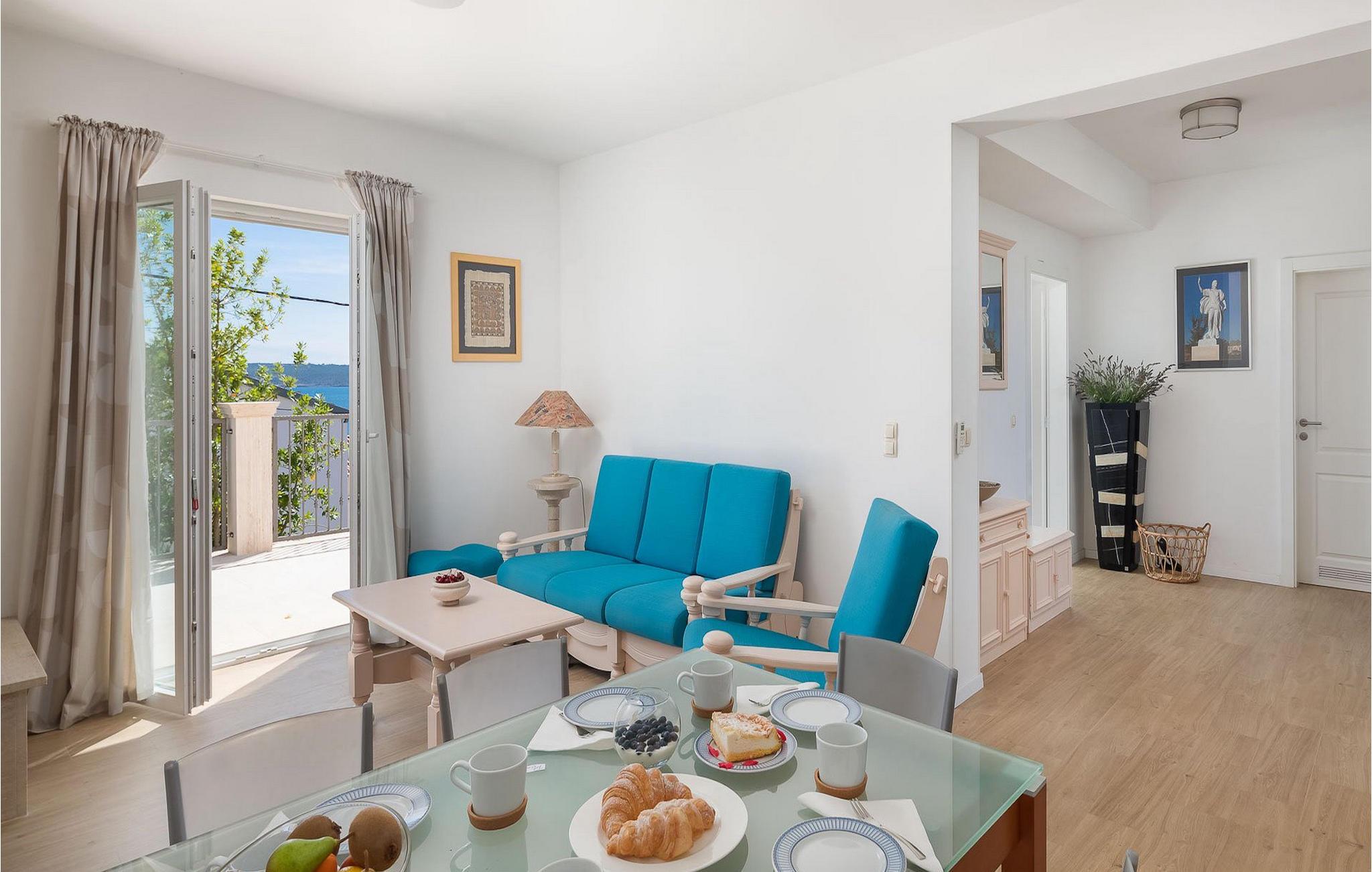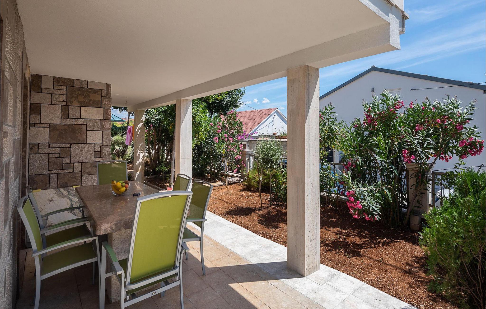 Villa Pomalo ligger tæt på havet. Villaen kan rumme op til 12 personer fordelt på fem soveværelser.