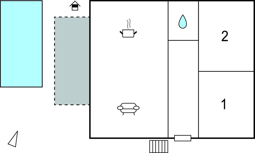 Opholdsstue/køkken 30m2 - 1 Soveplads. (Sofa, madras eller lignende).