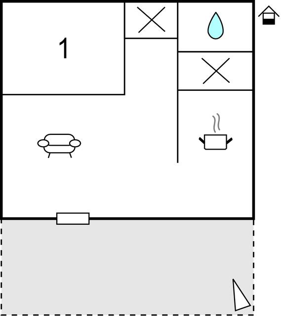 Opholdsstue/køkken - 2 Sovepladser. (Sofa, madras eller lignende).