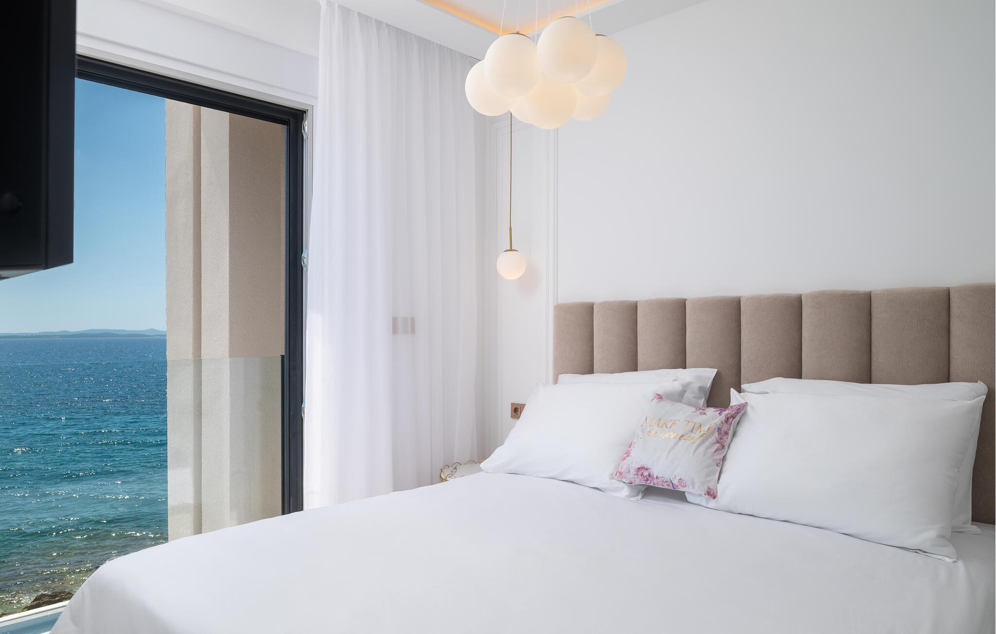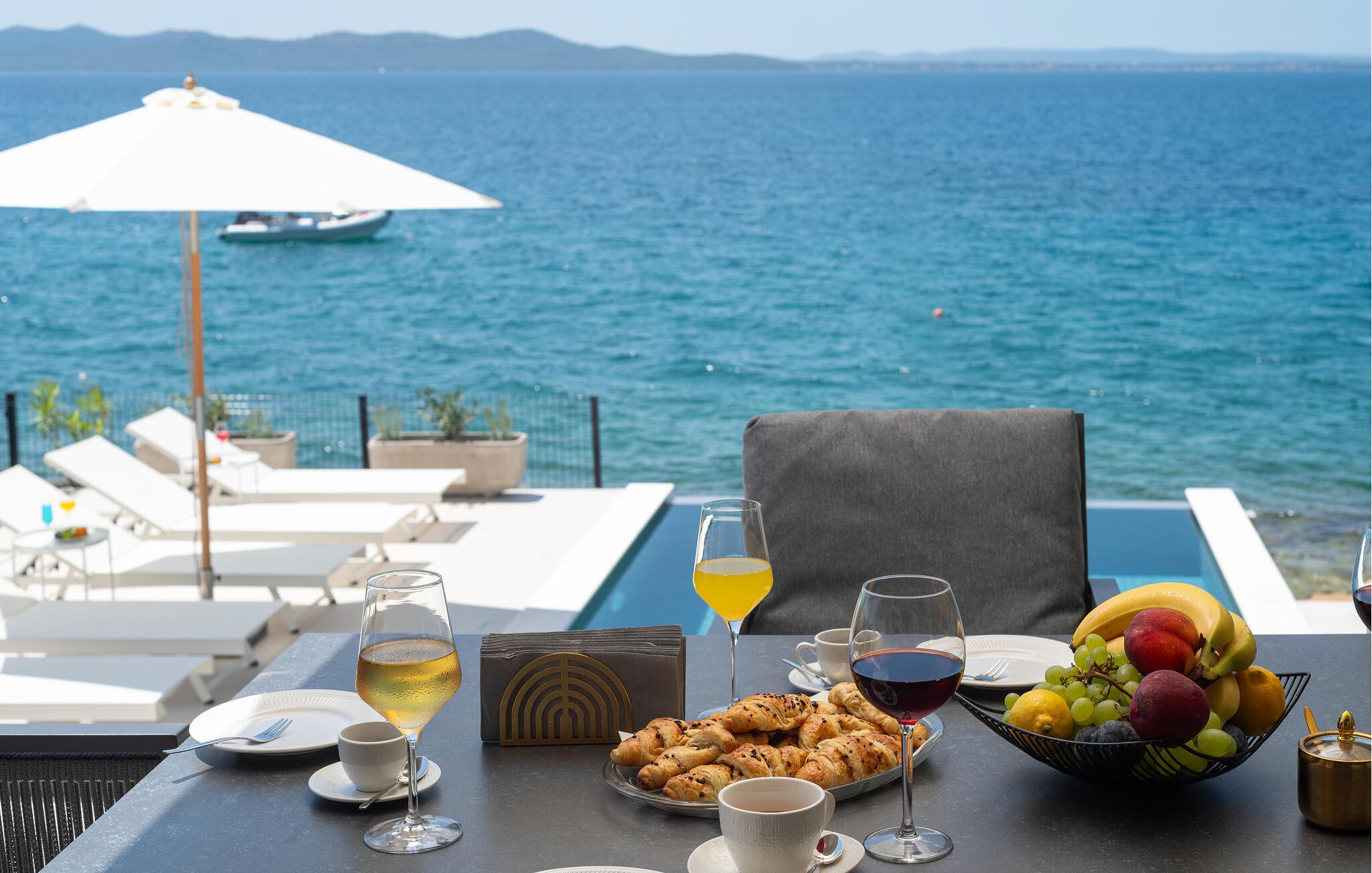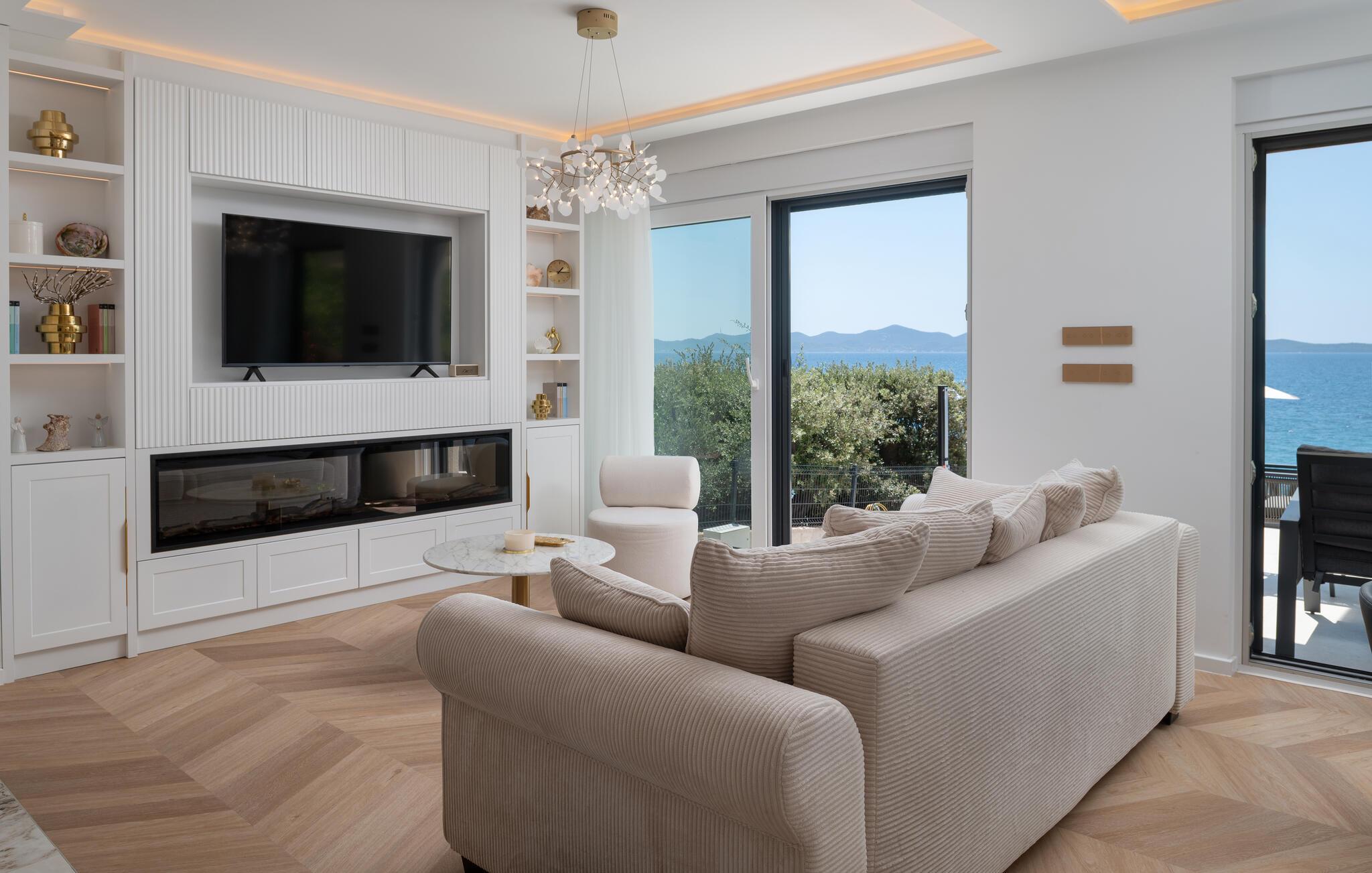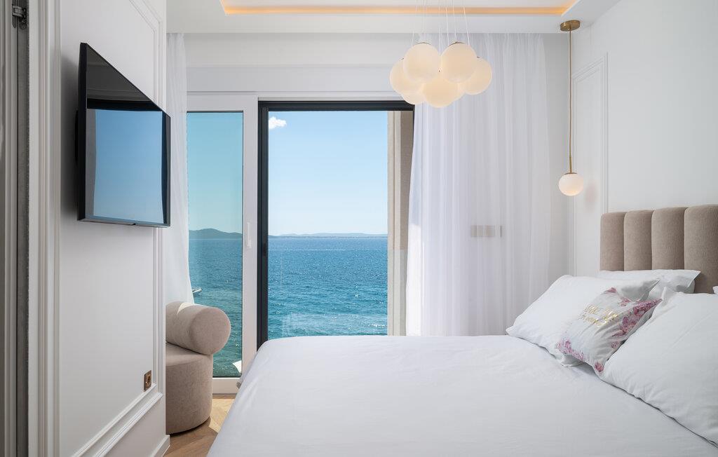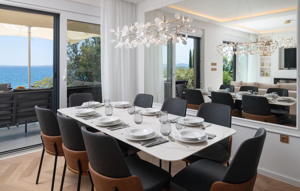 Nyd en uforglemmelig ferie i dette komfortable feriehus lige ved havet med pool og panoramaudsigt. Dette hus, der ligger direkte på stranden, lover en førsteklasses ferie. Gulv-til-loft-vinduer lukker masser af varmt naturligt lys ind, mens I nyder en fantastisk udsigt over Adriaterhavet. Elegante møbler, et diskret trælook og et sofistikeret lysdesign sikrer yderligere et afslappende ophold. Uanset om I streamer jeres yndlingsserie eller lytter til en interessant podcast, kommer I hurtigt i afslappende ferietilstand her. Hop i poolen ved de første solstråler og nyd en forfriskende dukkert om morgenen, mens en mild havbrise blæser hen over. Bagefter kan I slappe af med en kølig drink på terrassen, bladre i jeres yndlingsbog eller lave planer for den næste dag. Om aftenen inviterer terrassen jer til at nyde solnedgangens farvespil med et glas vin. Stranden ligger lige uden for døren og inviterer jer til at tilbringe afslappende timer ved havet. Tag en tur til den nærliggende by Zadar og oplev dens imponerende gamle bydel med romerske og venetianske relikvier. Om aftenen kan I nyde det unikke skue af Havorglet og "Hilsen til Solen" lige ved havnepromenaden. Udforsk Kožinos charmerende omgivelser med dens idylliske kyststier og maleriske udsigter.