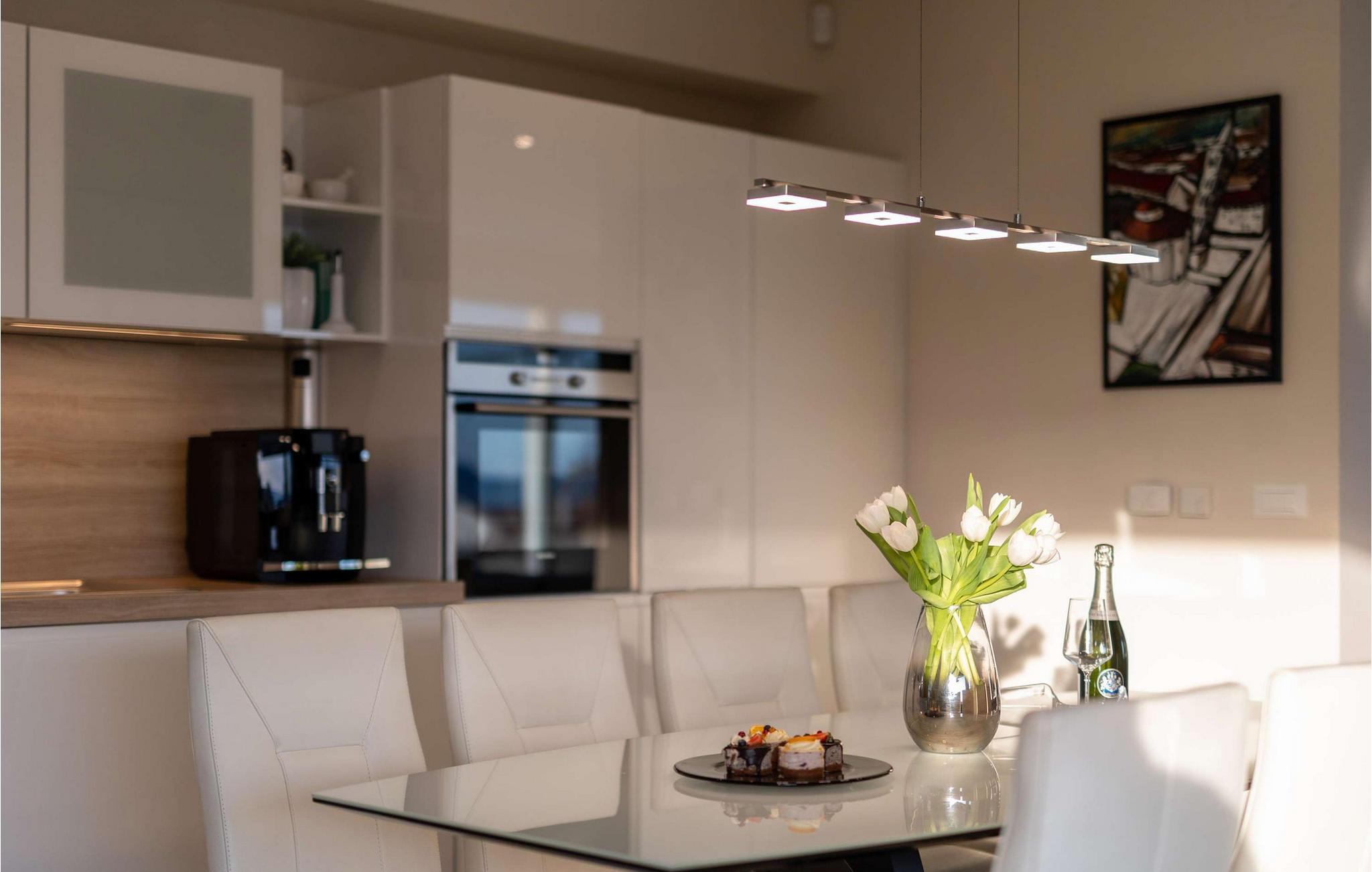 Den storslåede og moderne Villa Milagros byder jer velkommen med en lys atmosfære og stilfulde møbler. Den åbne stue med store panoramavinduer tilbyder en vidunderlig havudsigt og er perfekt til afslappende timer med læsning og en kop kaffe. Det elegante køkken flyder problemfrit over i spisestuen, hvor I kan spise med familie eller venner eller tilbringe en sjov aften med at spille bræt- og kortspil.