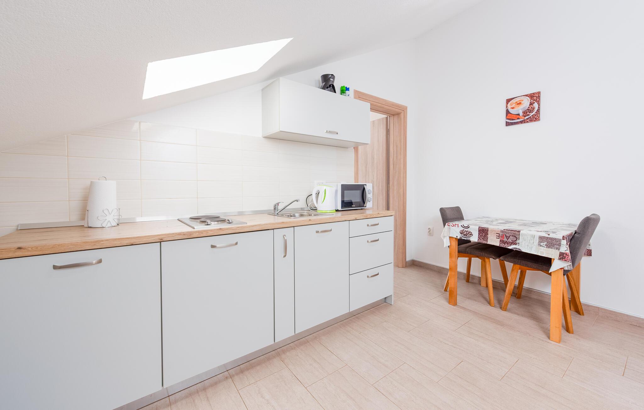 Træd ud på balkonen om morgenen med en kop duftende kaffe og nyd udsigten over vandet og den træbeklædte kyst. Tilbring en afslappende morgen her med en god samtale eller lav planer for den næste dag. Afslut aftenen med et glas kroatisk vin.