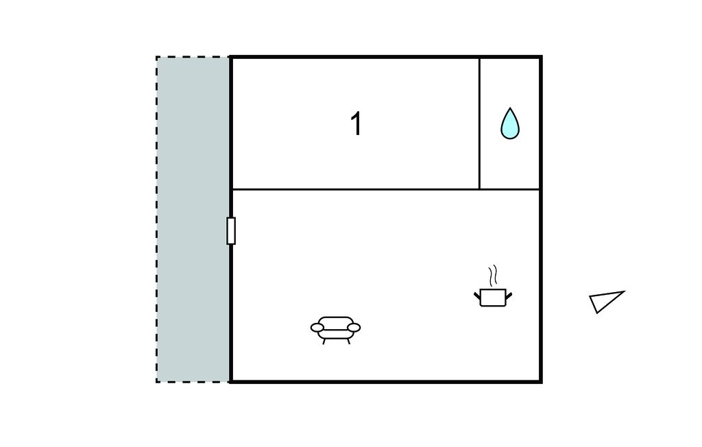 Badeværelse 4m2 (nr. 1) - WC. Varmt og koldt vand. Bruser