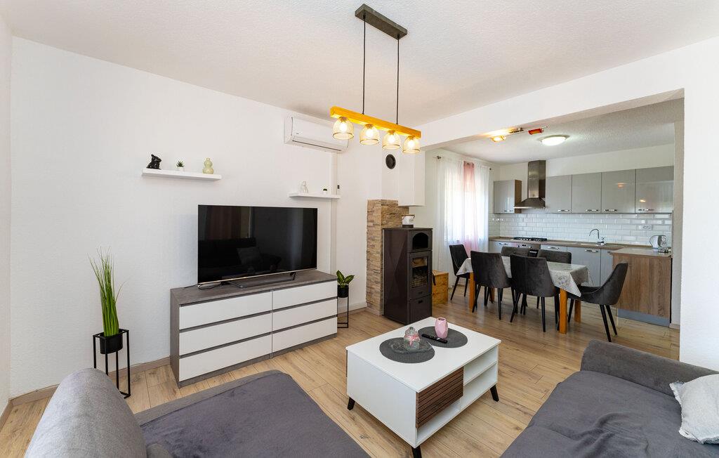 Dette indbydende feriehus ligger mellem Gornji Karin og Susnajara og med boligen fordelt på første sal. Anden sal er der ikke adgang til, men I må gerne bruge terrassen. I husets bagerste del ligger tavernen med grill, hvor I kan hygge jer sammen mens der laves mad. I tilbygningen ligger der et tredje soveværelse. Tag på en dagsudflugt i den historiske by Zadar med talrige kulturmindesmærker og mange gode restauranter samt attraktionerne Hilsen til solen og havorglet. For de aktive kan vi anbefale at rafte på floden Zrmanja i Obrovac, der ligger tæt på.