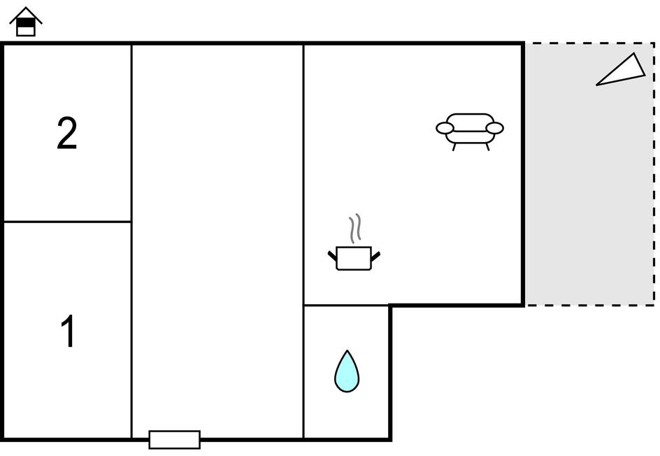 Opholdsstue/køkken - 2 Sovepladser. (Sofa, madras eller lignende).