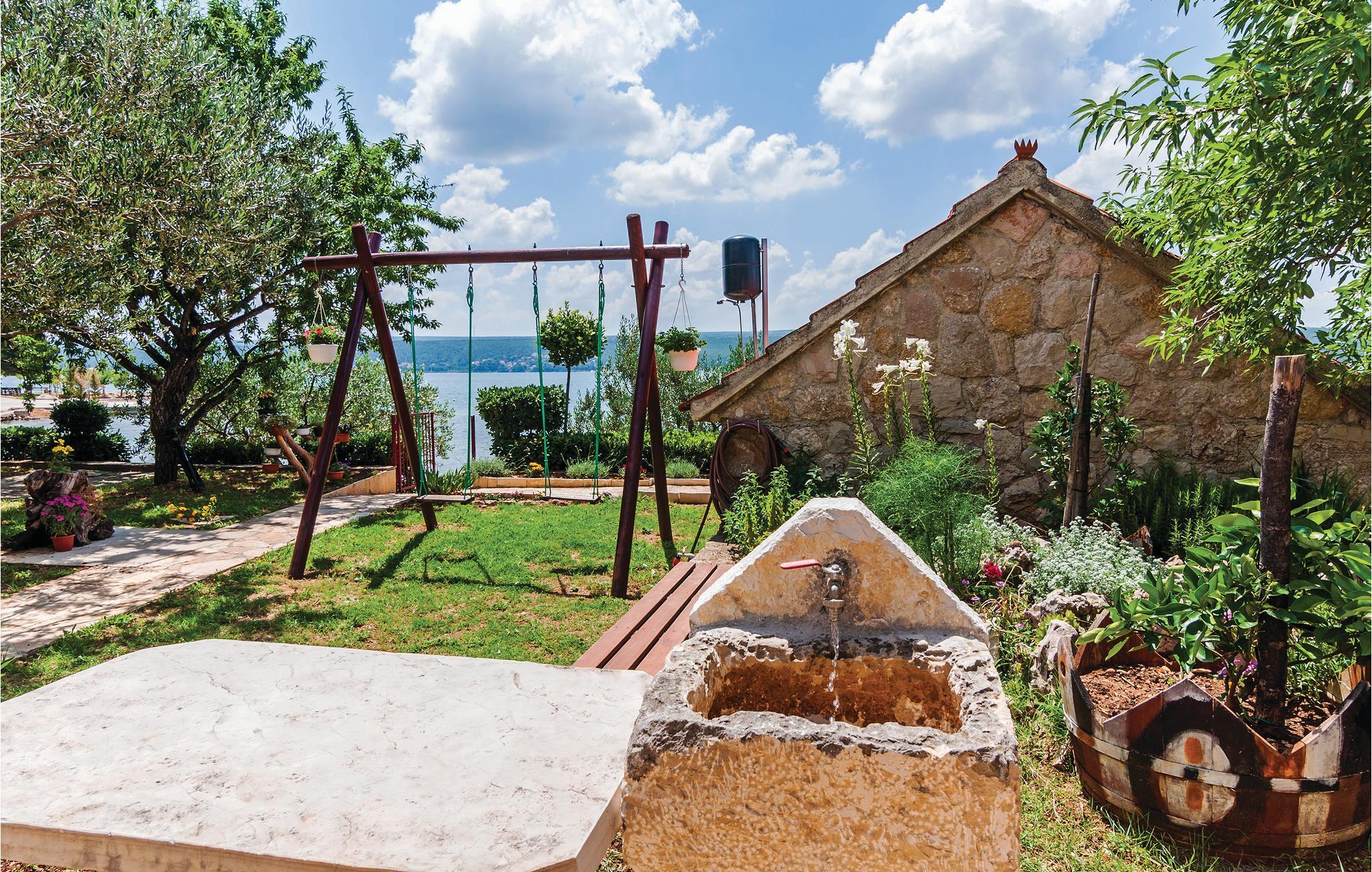 Lejligheden er lys og indbydende med moderne indretning og plads til op til 4 personer. Her bor I direkte ved havet, på første sal af et hus i Kruseva-Susnjar. Udendørs finder I en idyllisk have, som hele familien vil elske. Haven er det helt rette sted til at slappe af mens børnene leger og gynger. Haven går næsten helt ned til vandet, hvor I kan svømme og få mange timer til at gå.