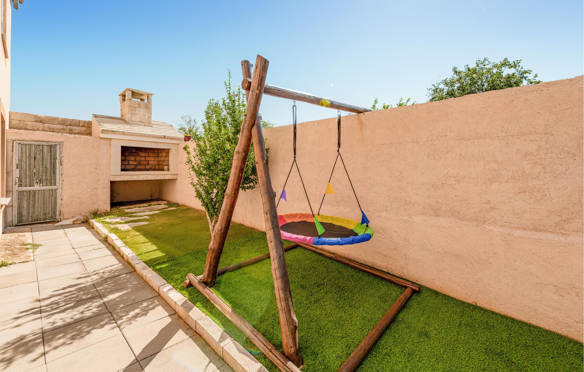 I stueetagen er opholdsstue og badeværelse. En intern trappe fører til øverste etage med 4 soveværelser, badeværelse og en stor gang, hvor bordfodbold og et bord til brætspil står. Der er legeredskaber til børnene på ejendommen, og der er et badmintonnet udenfor.