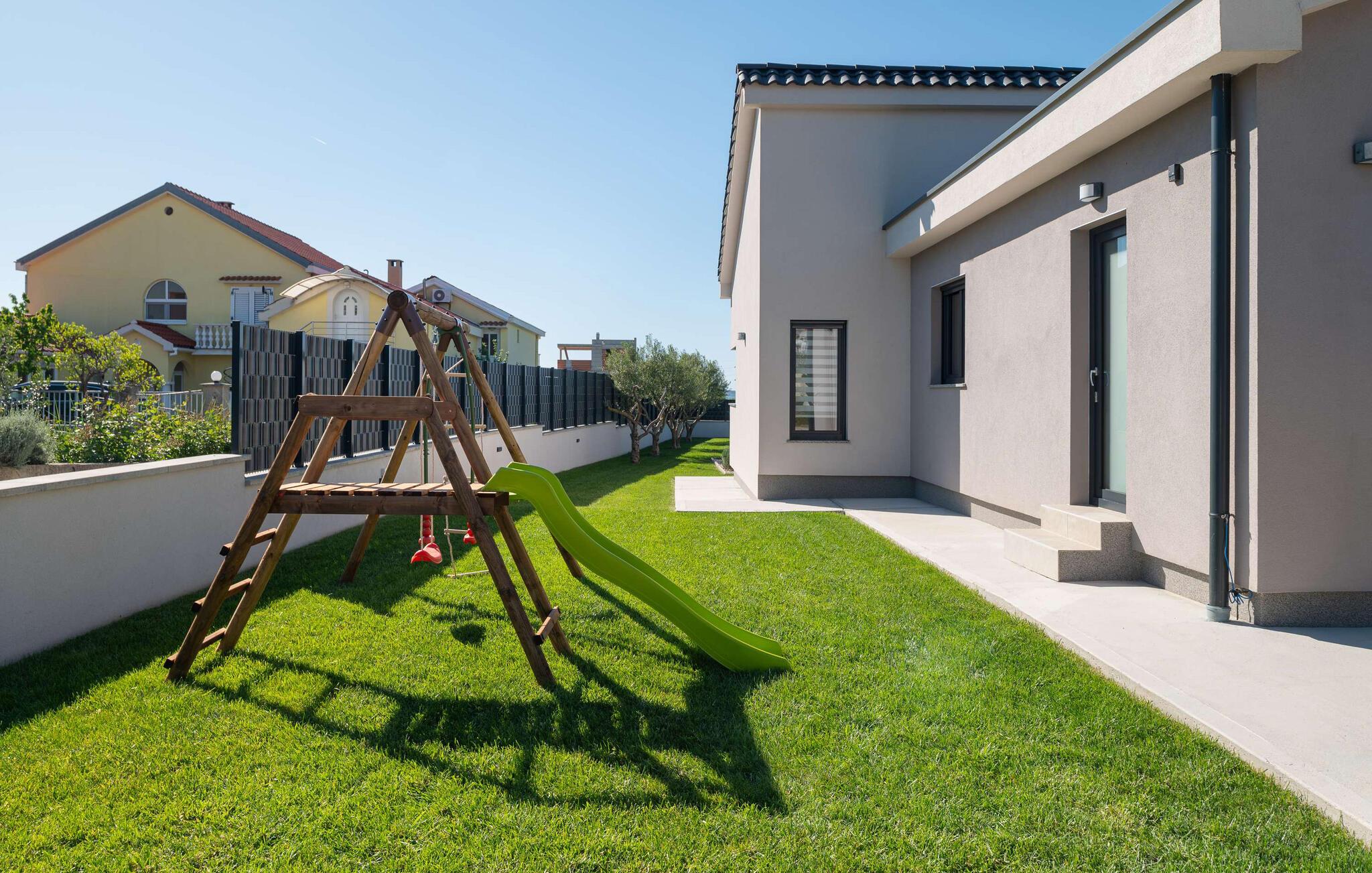 Beliggende nær Zadar og dens lange sandstrande, byder den moderne og stilfuldt indrettede Villa Mareta jer velkommen til fredelige og varierede dage væk fra travlheden med familien. Glæd jer til harmoniske måltider ved det indbydende spisebord, sjove spilleaftener efter en lang dag og samvær til gode samtaler på den behagelige sofa.