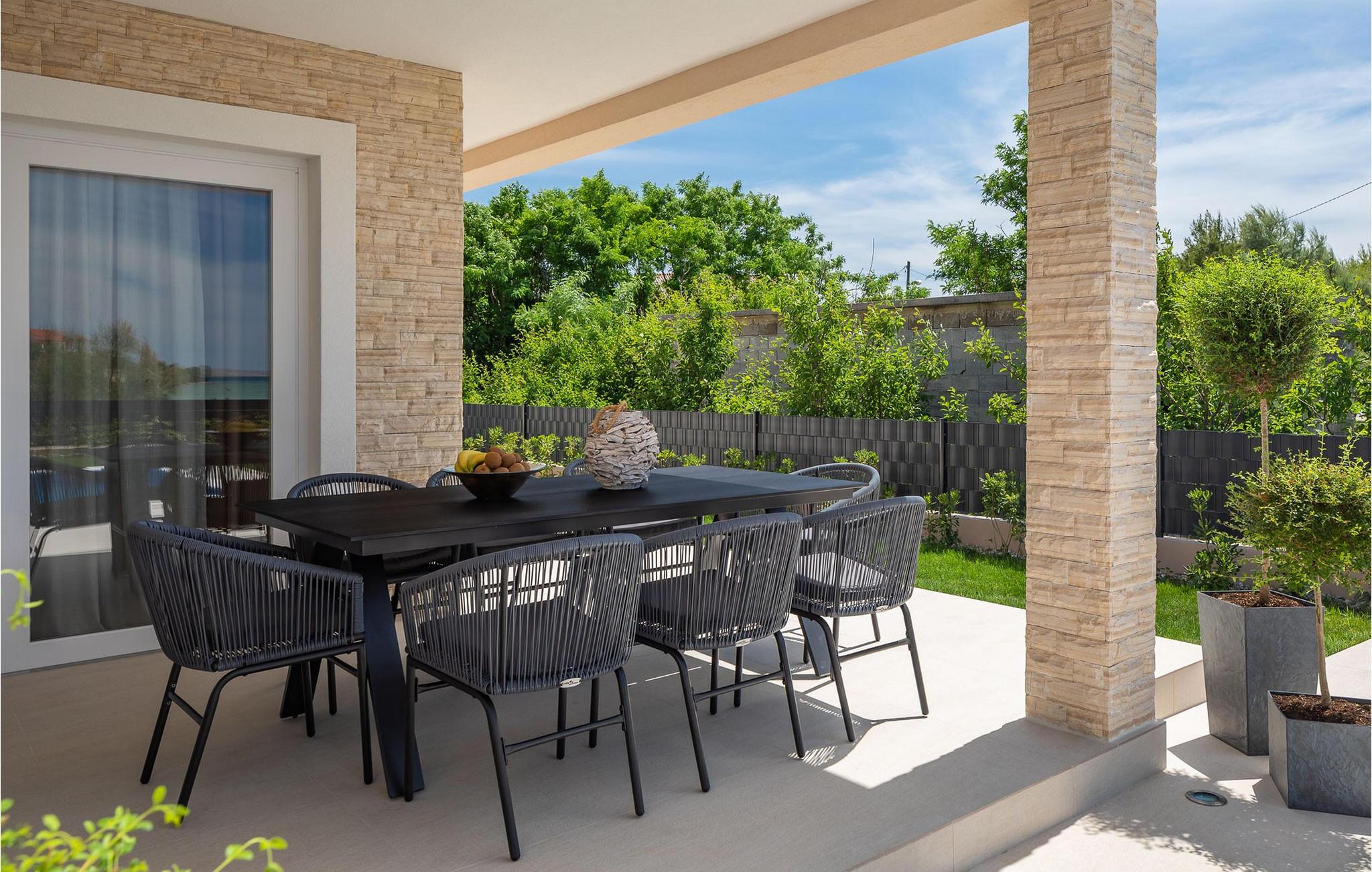 Den skyggefulde terrasse er det ideelle sted til en lækker morgenmad om morgenen og stemningsfulde grillmiddage i stearinlysets skær om aftenen. snup en frisk dukkert i poolen, når I har lyst, nyd afslappende timer på liggestolene og gå ned til stranden ved solnedgang for en romantisk svømmetur i havet.