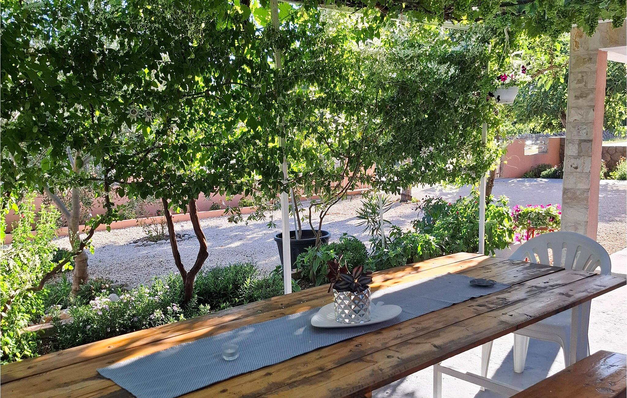 Denne rummelige og hyggelige ferielejlighed ligger på anden sal i en familieejendom i byen Maslenica. I haven der omgiver huset kan I hygge jer sammen med de andre beboere og måske lave mad på den fælles grill. Se på kunst og kultur i Zadar og de vovemodige kan tage til Maslenica broen og prøve at bungee-jumpe, rafte på floden Zrmanja og tage på safari i Velebit bjergene. I nationalparkerne Krka, Plitvicer Seen og Kornati kan I opleve betagende smuk natur. I den maleriske by Zadar er der også utallige restauranter og cafeer, her kan I smage de lækre kroatiske specialiteter, hvor kød, fisk og skaldyr har en stor plads. Desuden kan I nyde landets gode røde og hvide vine. Her er alle gode muligheder for at holde en ferie fuld af dejlig afslapning eller aktiviteter og udflugter.