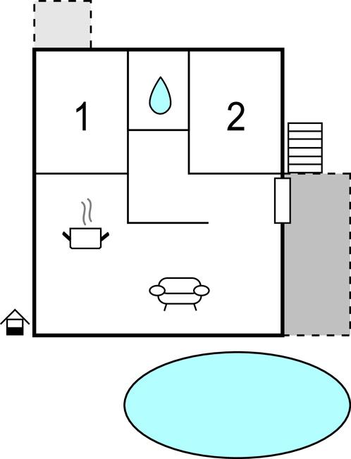 Opholdsstue/køkken 30m2 - 2 Sovepladser. (Sofa, madras eller lignende).