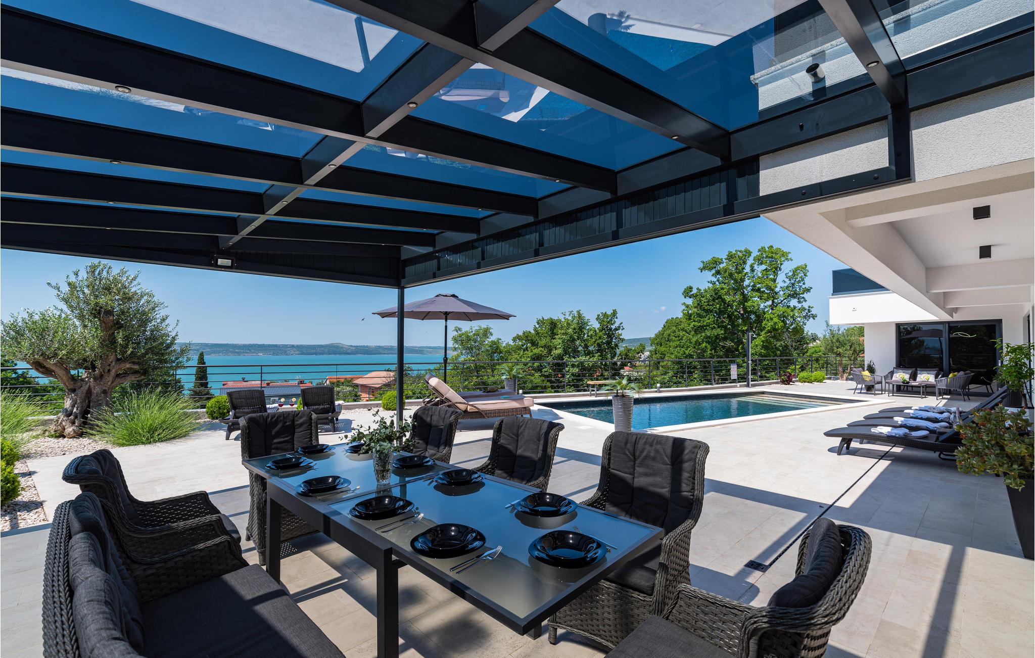 Nyd afslappende timer på liggestolene og slap af. Snup en frisk dukkert i det krystalklare vand og tag en pause i skyggen under en parasol. Tilbring hyggelige stunder i den overdækkede spiseplads og nyd måltider under åben himmel med familie eller venner. Afslut dagen med en kølig drink på terrassen, mens solen langsomt synker ned i havet.