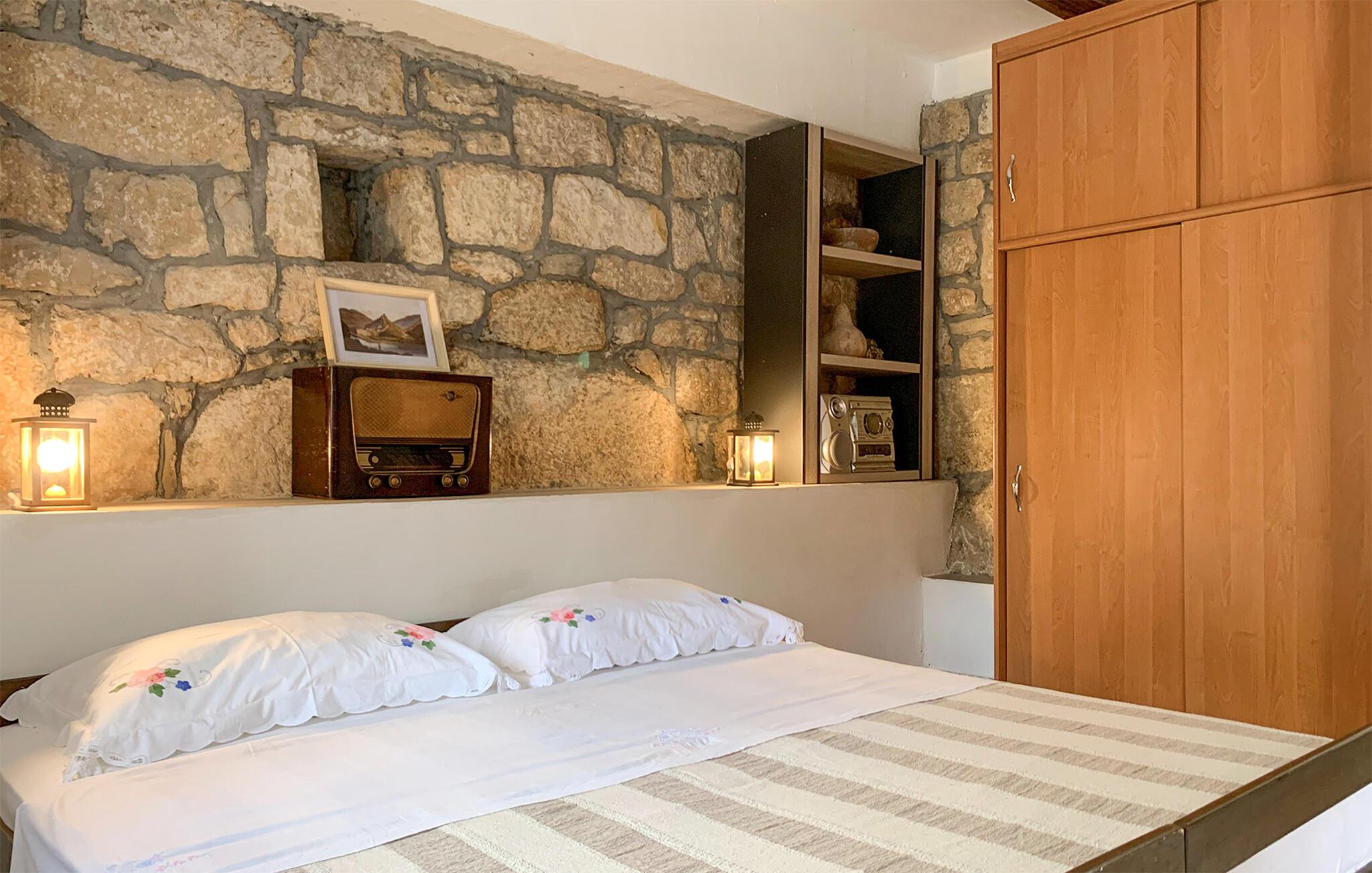 Skjult i det idylliske landskab i det nordlige Dalmatien venter dette traditionelle stenhus på jer med sine rustikke, men stilfulde møbler. Høje træbjælkelofter, åbne pejse og varme farver skaber en hyggelig atmosfære. Det åbne køkken og den indbydende opholdsstue giver de optimale rammer for afslappende aftener.
