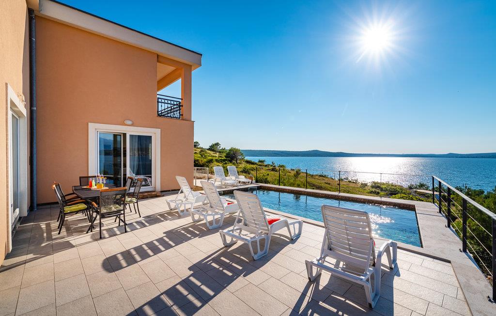Tilbring jeres sommerfeire i den romantiske kystby Novigrad i dette vidunderlige feriehus med pool. Huset rummer to separate lejligheder, en i stueetagen og en på første sal med udvendig trappe. Fra terrassen kan I nyde panoramaudsigten over det blå hav, lytte til bølgernes lyd og nyde den forfriskende brise. Ca. 300 m af tilkørslen til huset er ikke asfalteret. Med meget natur er byen Novigrad et sandt lille paradis for de besøgende og byder på rigtig mange attraktioner. Besøg nationalparken Paklenica, Zrmanja-slugten og byen Zadar.