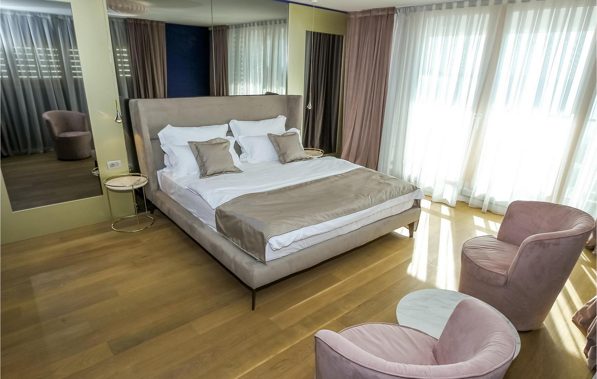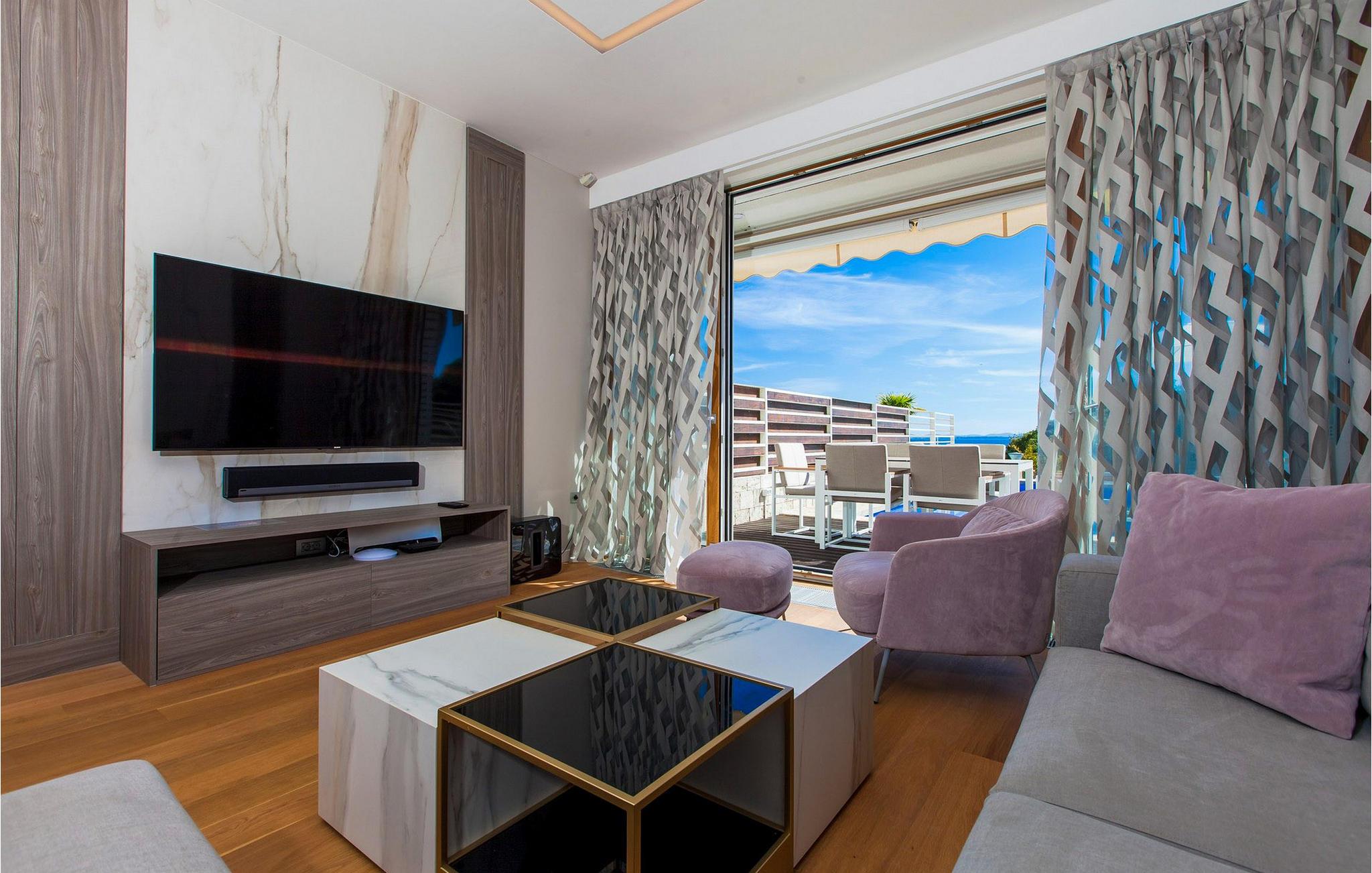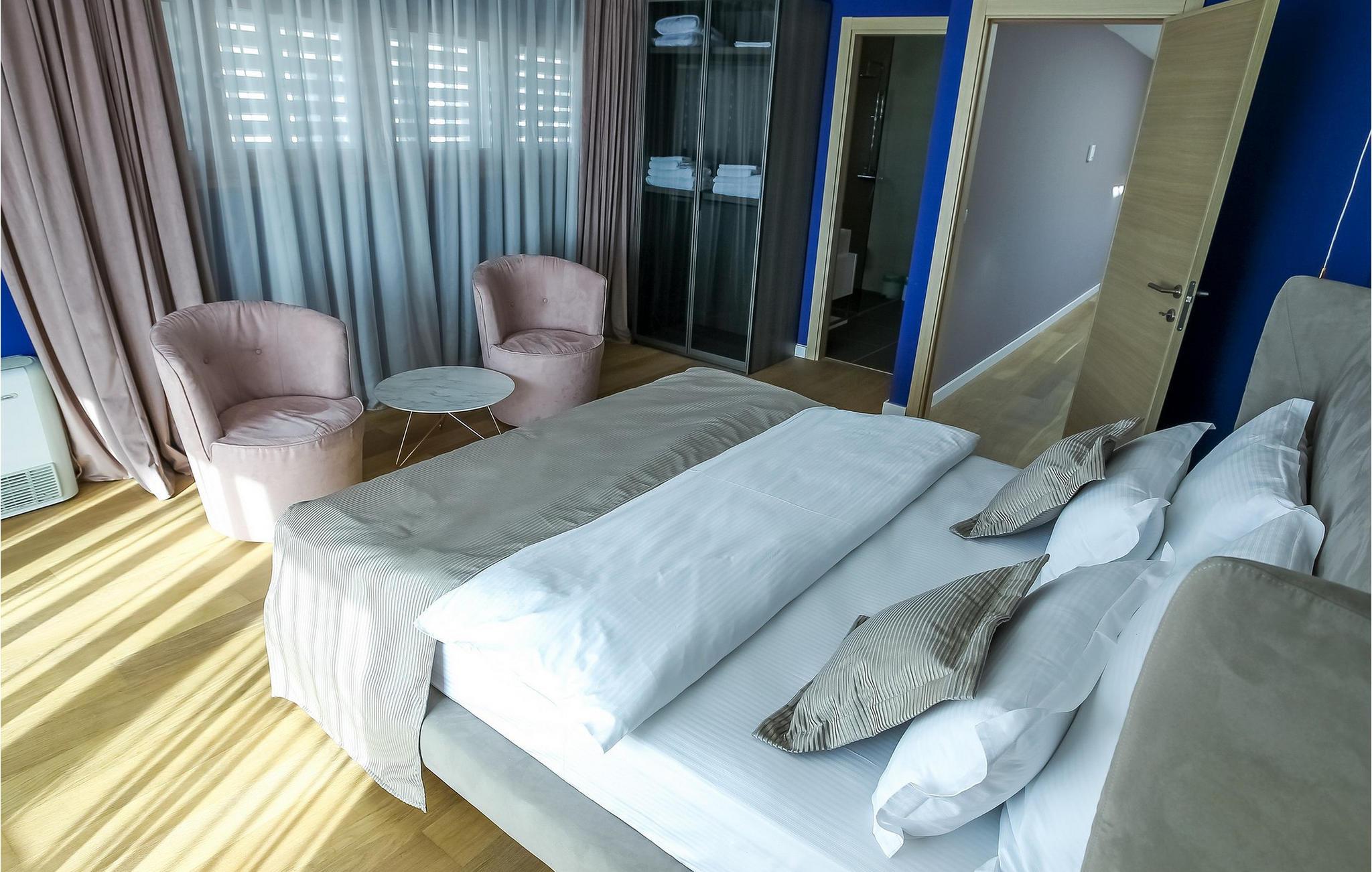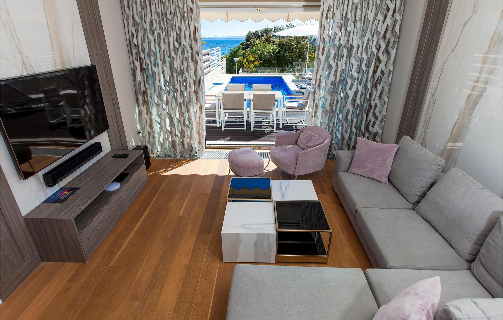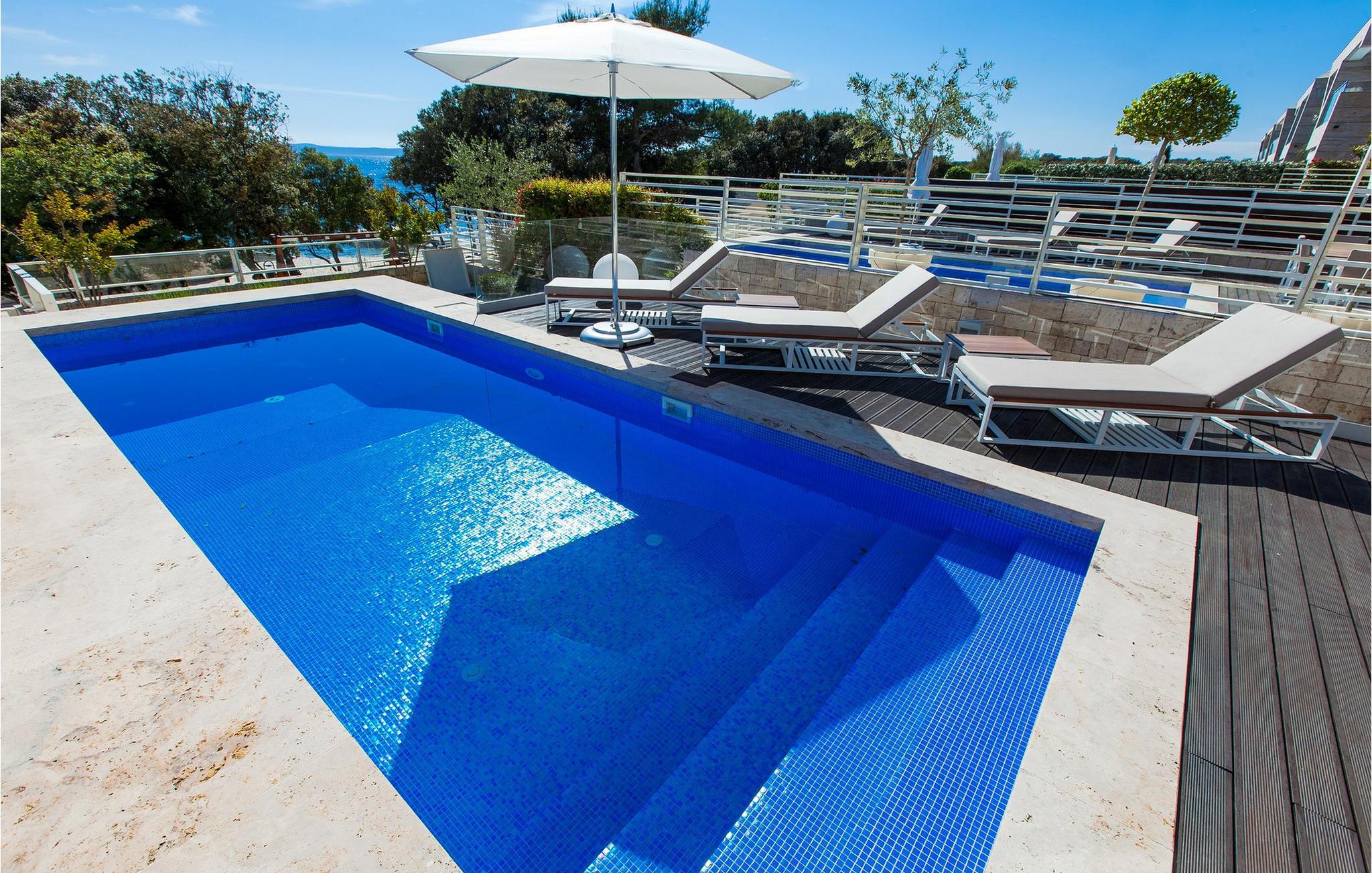 Oplev en ferieidyl lige ved havet i denne smukke villa. Kun få skridt fra havet ligger den elegante Villa Lantana i den charmerende ferieby Petrcane. Den lyse stue og det moderne køkken i stueetagen lægger op til at tilbringe hyggelige timer med havudsigt. I finder fred og ro i de komfortable soveværelser på begge etager, hver med eget badeværelse. I den indhegnede have kan I starte dagen med en forfriskende dukkert i den opvarmede pool og derefter nyde grillmad udendørs - den perfekte ramme for afslappende sommerdage. Das på liggestolene og kig ud over havet. Petrcane betager med sin nærhed til den historiske kongeby Nin og det livlige Zadar. Begge byer lokker jer med kulturelle højdepunkter og et varieret underholdningsprogram. De, der søger fred og ro, kan nyde strandture og traditionelle fiskefestivaler, mens eventyrere kan vælge mellem talrige sports- og fritidsaktiviteter. Oplev den fortryllende Zadar-region og oplev uforglemmelige dage på Villa Lantana. Bemærk venligst: Ejendommen accepterer ikke ungdomsgrupper under 30 år eller polterabender. Bookinger fra sådanne grupper vil blive afvist, selv ved ankomst eller under opholdet, uden refusion.