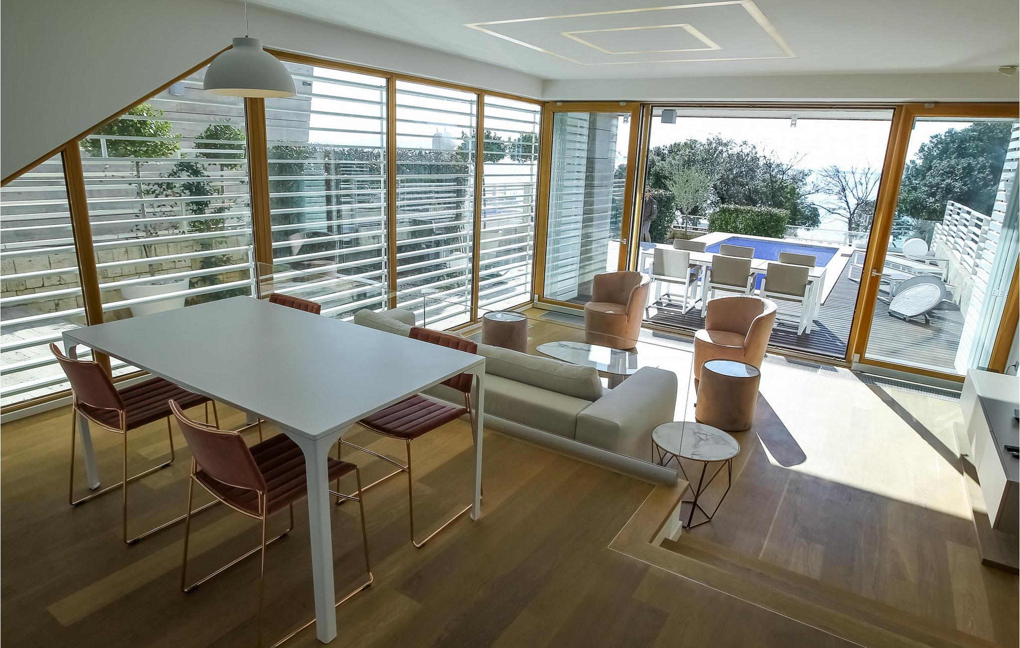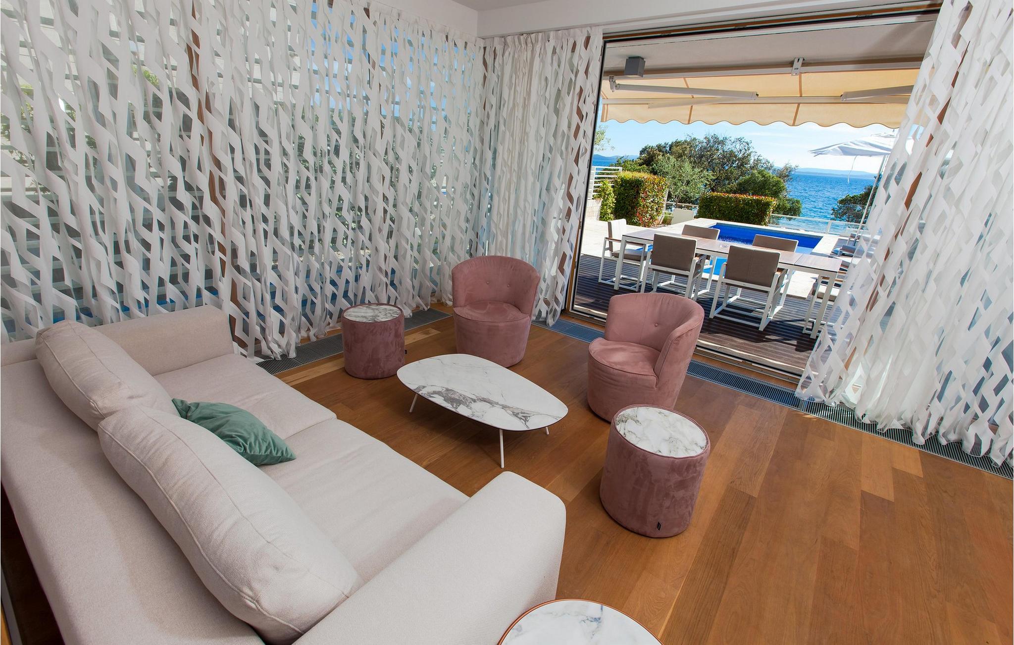 Glæd jer til jeres drømmeferie i denne elegante villa med havudsigt. Beliggende i den charmerende by Petrcane venter den stilfulde Villa Calla på jer, kun få skridt fra det glitrende hav. Villaens åbne stueetage har et moderne, minimalistisk køkken, en indbydende spiseplads og en lys stue - perfekt til underholdning med familie og venner. Smagfulde møbler i pastelfarver skaber en atmosfære af tidløs elegance og afslapning på begge etager. I haven inviterer en opvarmet pool jer til en forfriskende dukkert, mens liggestole og et grillområde lover dejlige timer udendørs. Dase på liggestolene og se havet. Petrcane er den ideelle base for at udforske det omkringliggende område. Slap af på sand- og stenstrandene i Zadar, Nin eller Vir og fordyb jer i den rige kulturarv i disse historiske byer. I sommermånederne kan I nyde et varieret program med koncerter, festivaler og lokale begivenheder. Villa Calla tilbyder komfort og stil til en uforglemmelig ferie i Dalmatien. Bemærk venligst: Ejendommen accepterer ikke ungdomsgrupper under 30 år eller polterabender. Bookinger fra sådanne grupper vil blive afvist, selv ved ankomst eller under opholdet, uden refusion.