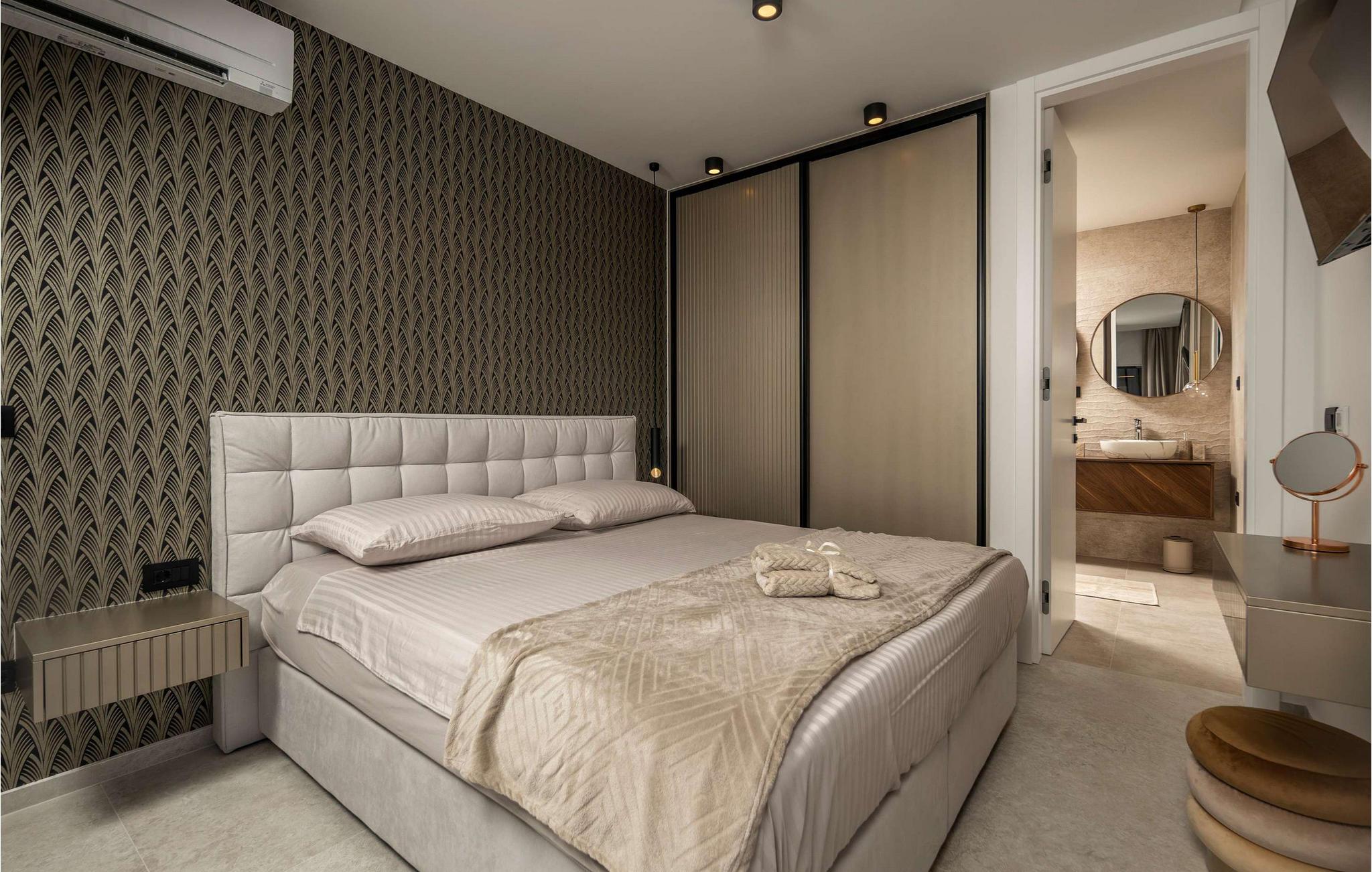 Villa Meta lover en virkelig exceptionel ferie, der har en moderne, lys atmosfære, hvor rene linjer og elegante detaljer smelter harmonisk sammen. Slap af i den rummelige opholdsstue eller nyd måltider sammen ved det stilfulde spisebord med udsigt over poolen. Brug det åbne køkken til afslappede aftener med madlavning og afprøvning af nye opskrifter. Find fred og ro i de komfortable sofaer eller i de hyggelige siddeområder og nyd den elegante ro, som denne villa udstråler.
