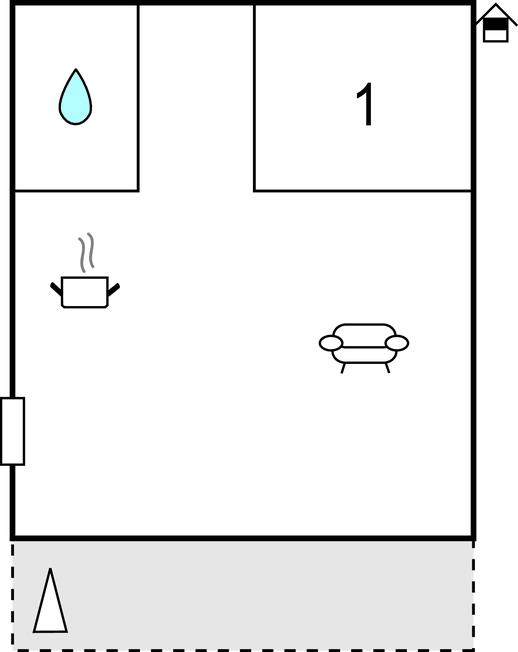 Opholdsstue/køkken - 1 Soveplads. (Sofa, madras eller lignende).