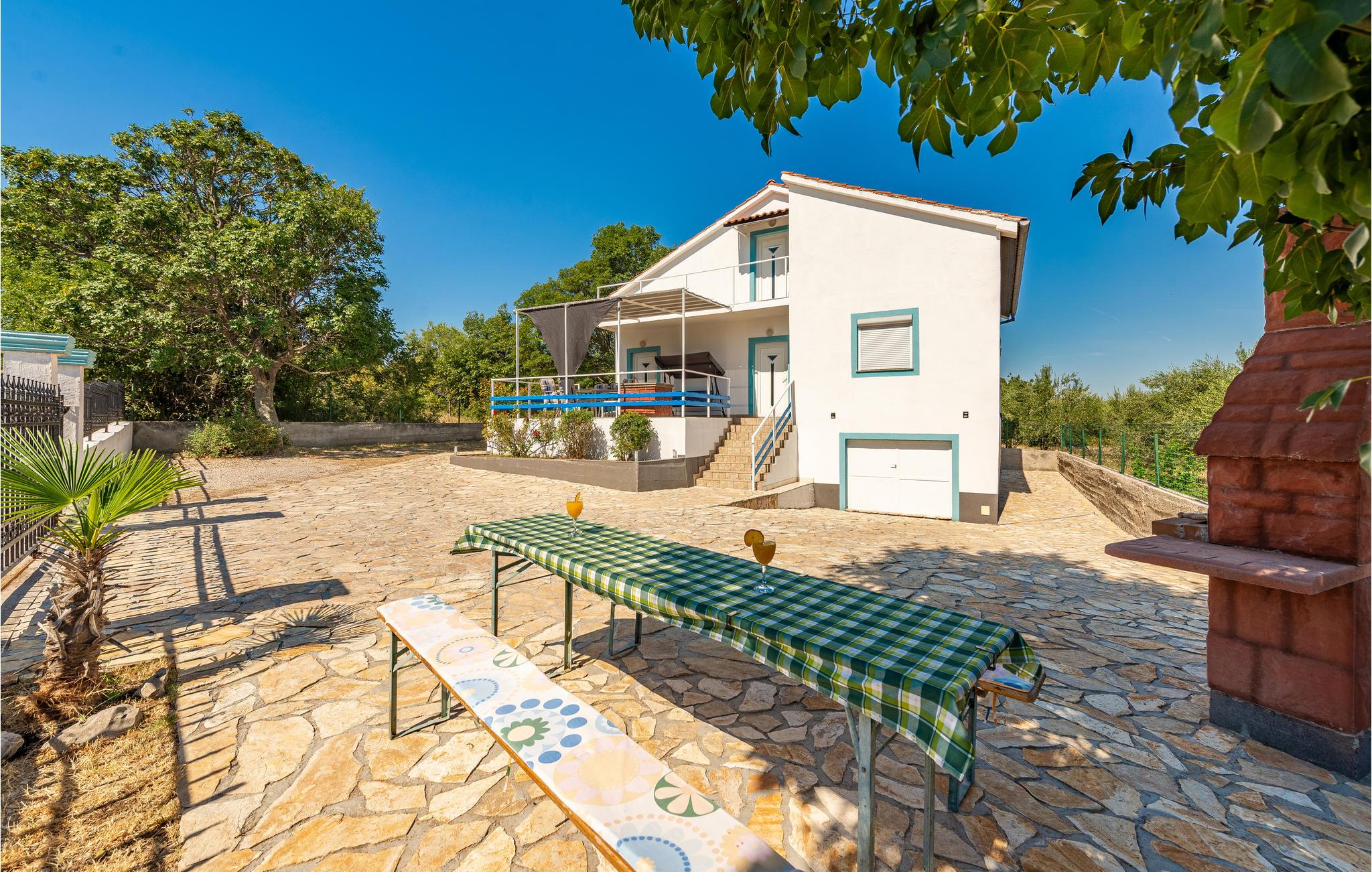 I dette feriehus er der en et-værelses og en to-værelses lejlighed med forbindelser udenfor. På grunden er der god plads til børnenes leg og boldspil, og der er en dejlig pool til rådighed. Ved den nærliggende kiesstrand er der også et område med helende mudder. Besøg også Zadar, med en smuk gammel bydel og ved promenaden to eksempler på moderne kunst, der er meget populære. Når bølgerne slår mod Havorgelet opstår en særegen musik og når solen går ned så er der et betagende spil af lys i Solhilsen. Besøg også den nærliggende nationalpark med betagende natur: Paklenica, eller tag på en safaritur i Velebitbjergene.