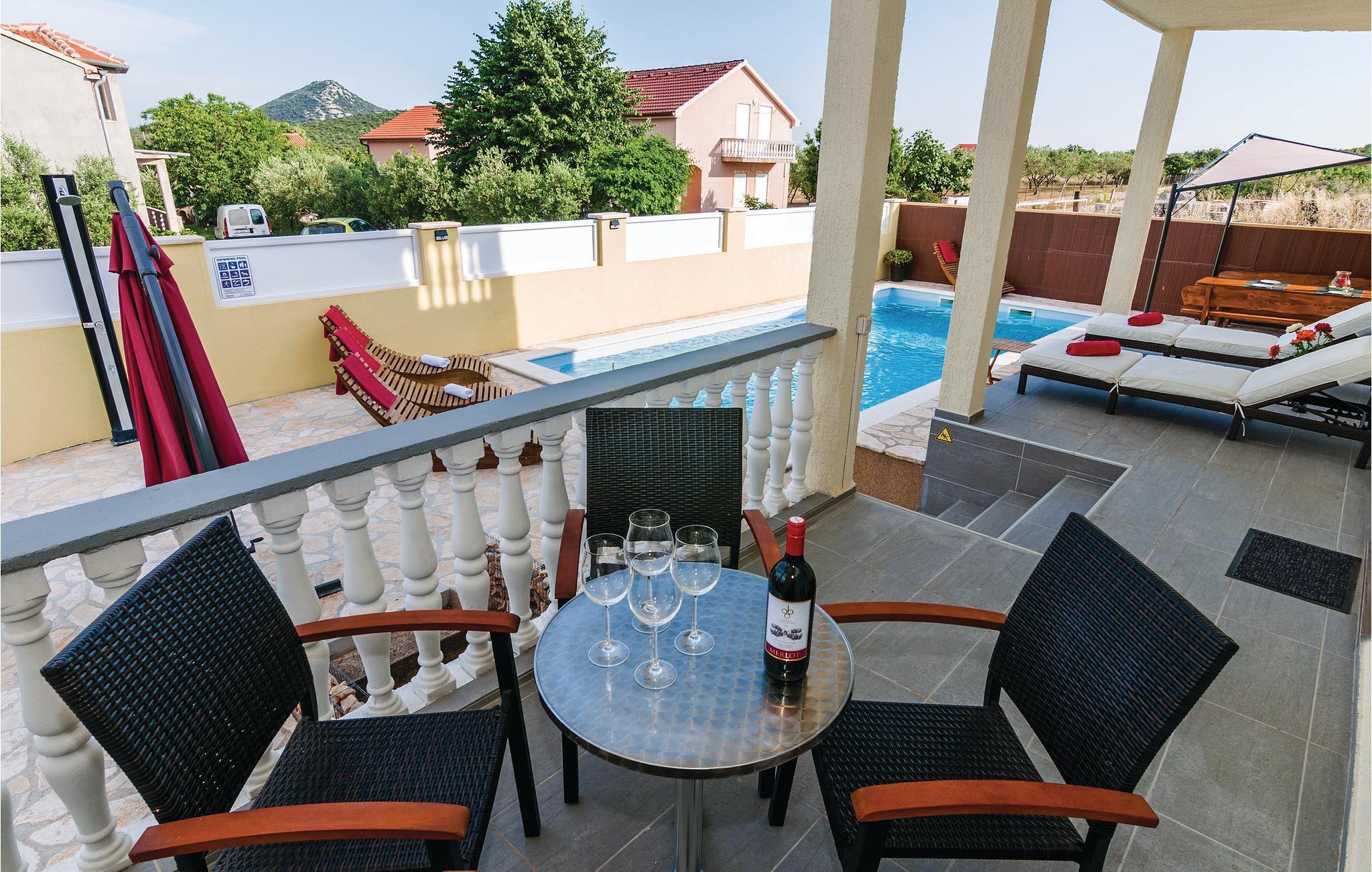 Omgivet af natur og en mediterran atmosfære i et lanskab, der bliver forkælet med meget sol, ligger dette smukke feirehus med pool og velholdt have. I den lille landsby Polaca er I tæt på byerne Benkovac og Biograd. Den nærmeste sandstrand finder I ca. 8 km herfra. De flot indrettede værelser er fordelt på stueetagen og 1. sal. En spillekonsol, pikado, fussball og en trampolin sørger for underholdning. Besøg Vrana søen i nærheden med fuglereservatet, Maškovica Han, en sær osmansk bygning samt fritidsparken med emneområderne piratbyen, det vilde west og universum.
