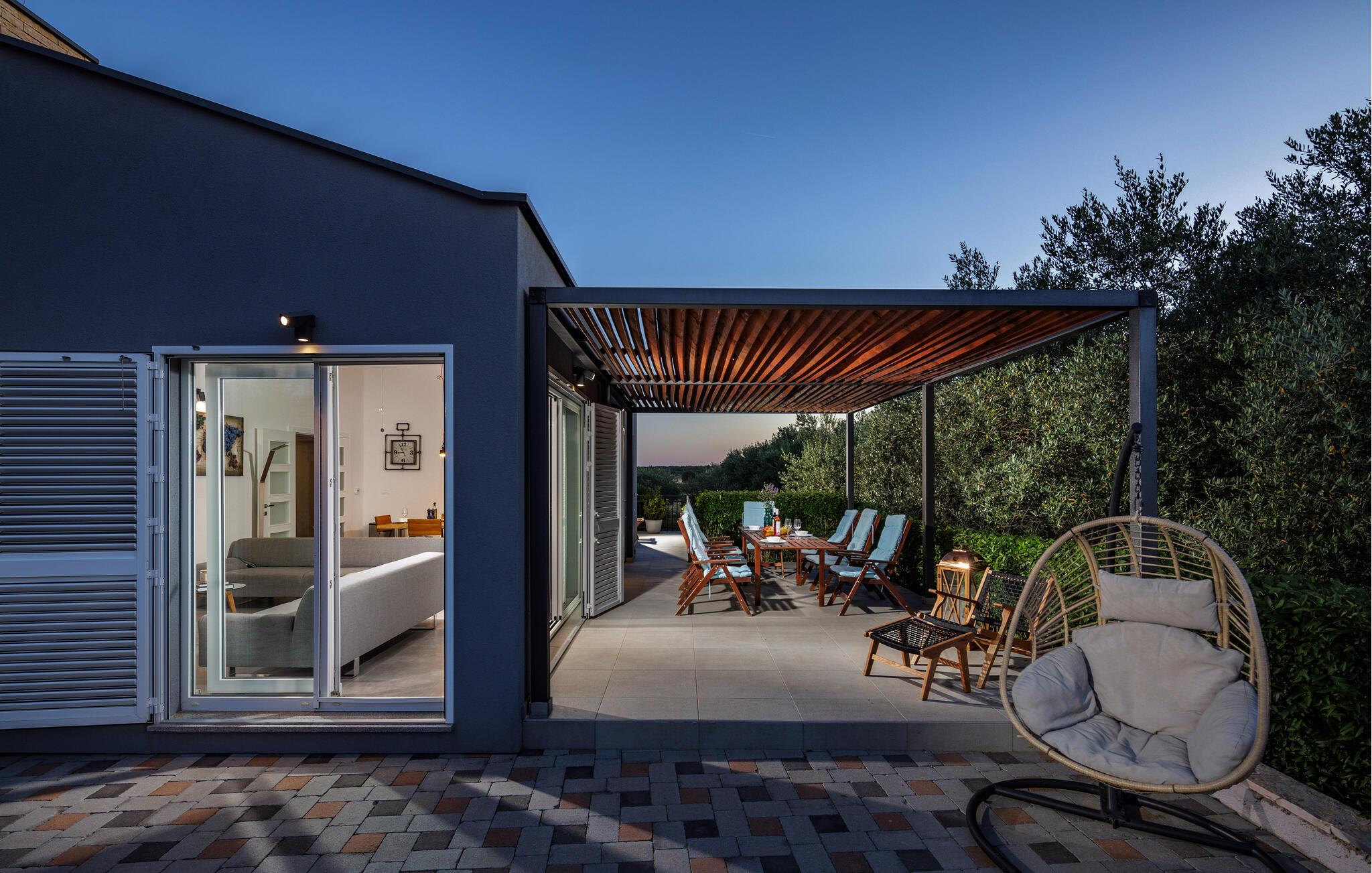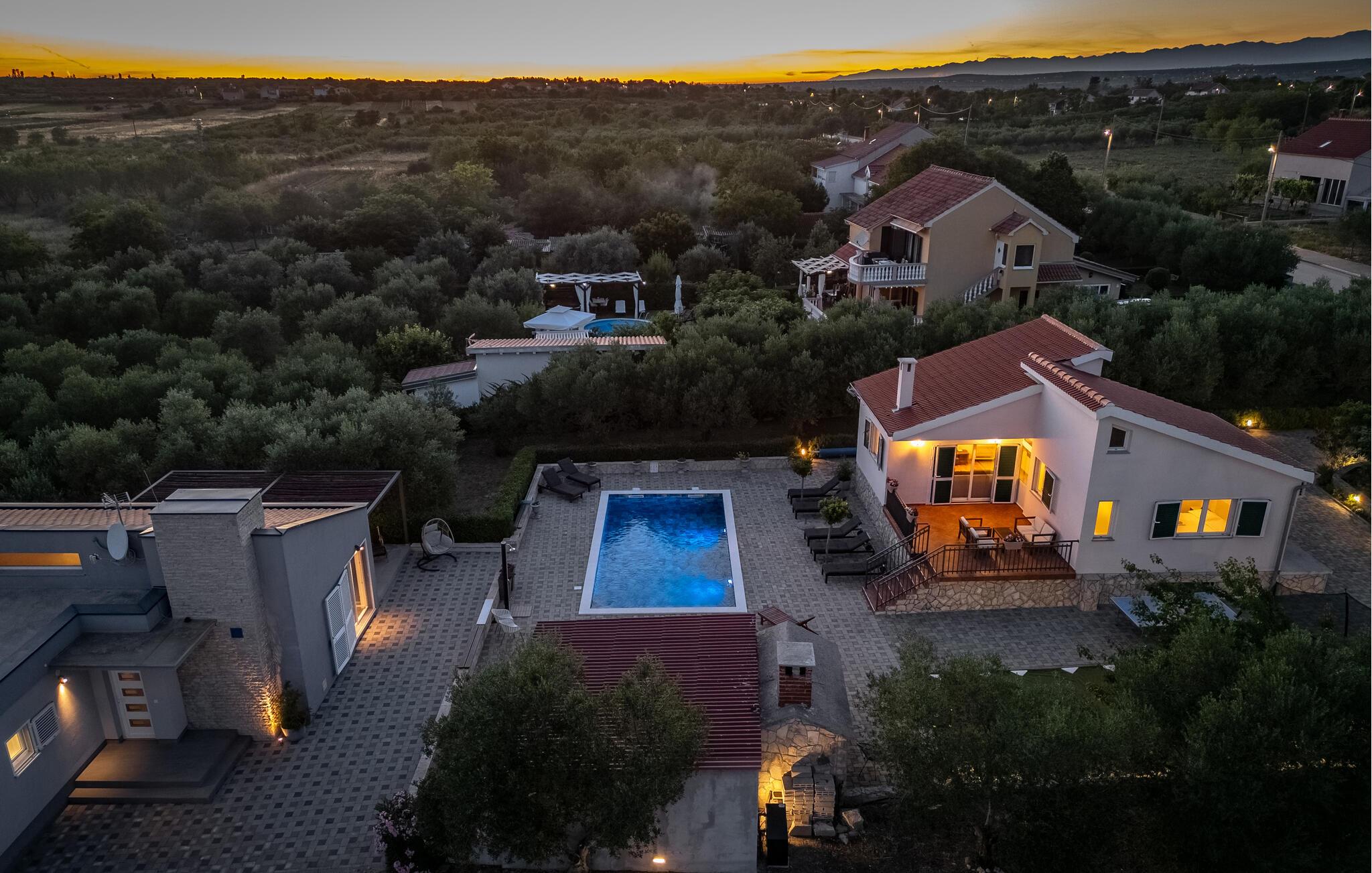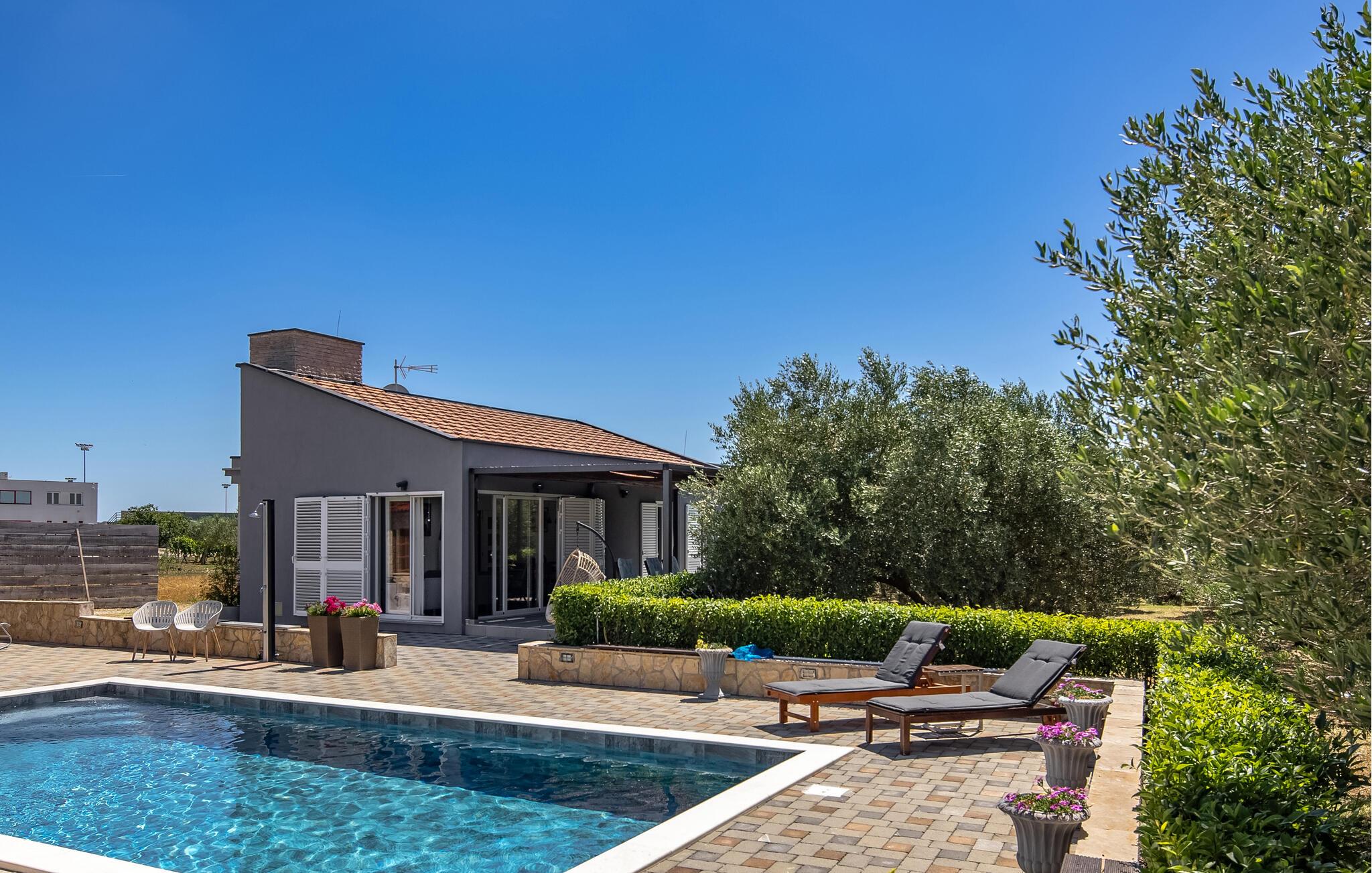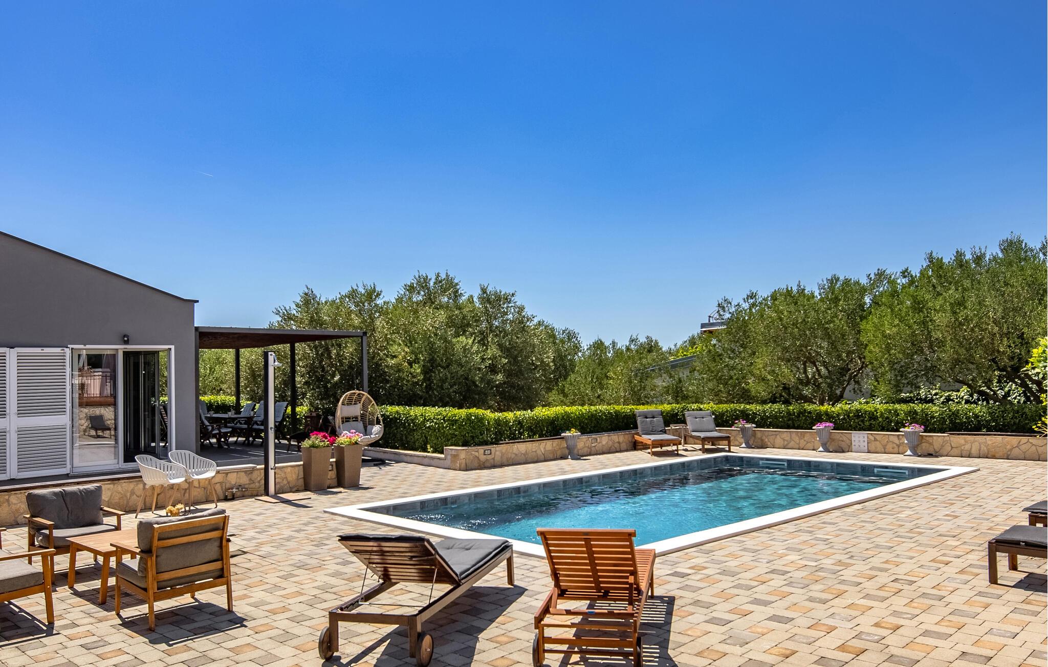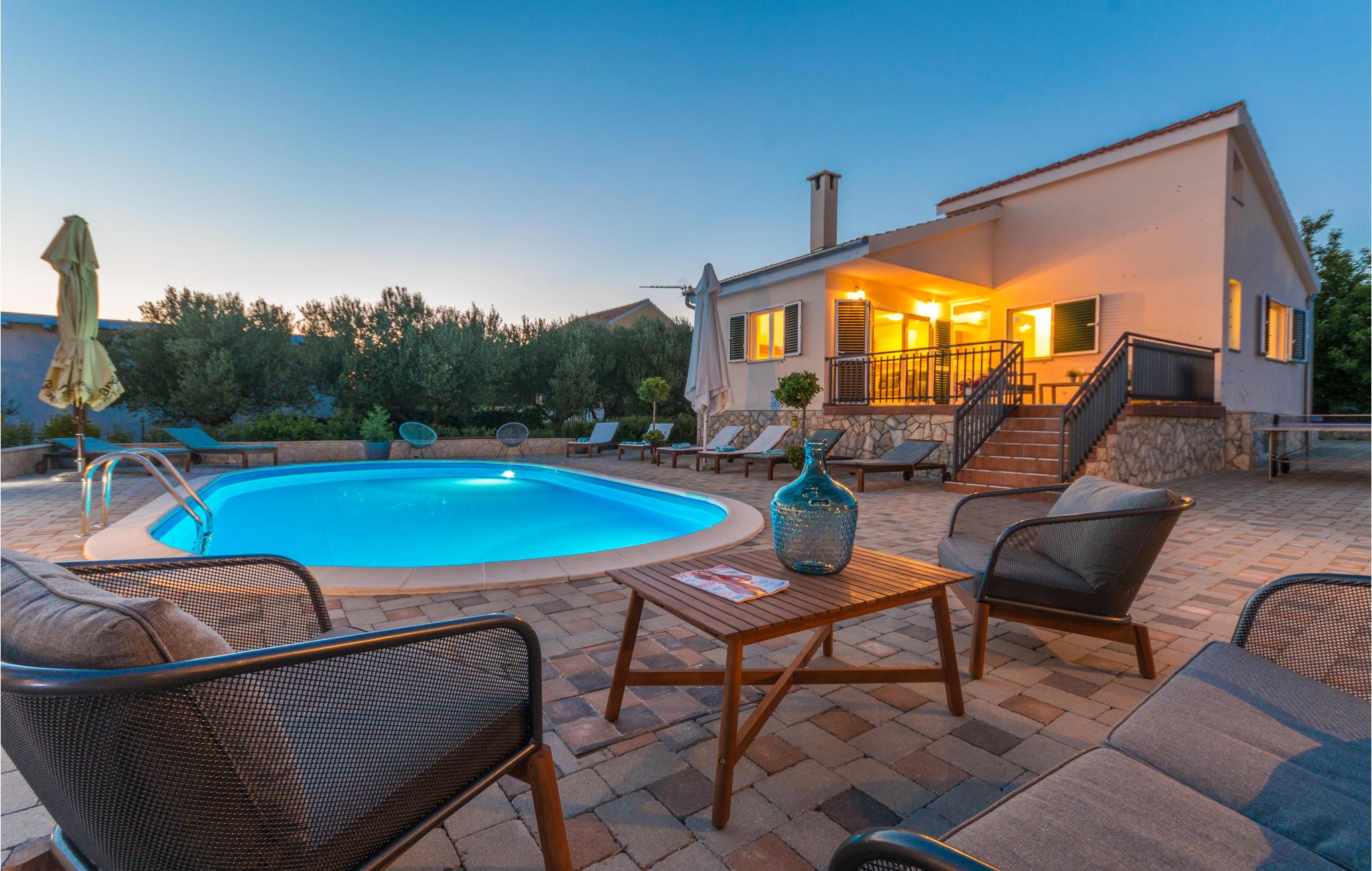 Denne ejendom med egen swimmingpool består af 2 separate huse. Indendøre er der klimaanlæg og her findes 4 soveværelser samt 4 badeværelser. I bor i en lille landsby nær kystbyen Biograd na Moru, der engang var sæde for den kroatiske konge.