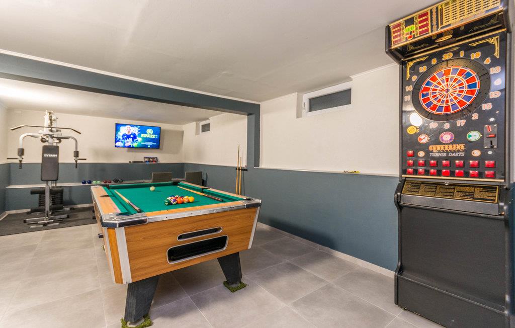 Huset er komfortabelt indrettet og skaber perfekte rammer om en suveræn ferie. Den private udendørspool er et tydeligt højdepunkt og indbyder til masser af badesjov og solbadning på liggestolene ved poolen. Til børnenes underholdning er der også trampolin, rutschebane, sandkasse og gynge, og gæster af alle aldre kan spille basketball på den private basketballbane. På de store terrasser kan I nyde skønne feriemåltider sammen og afslutte dagen med et glas vin. I har naturligvis også mulighed for at grille. Om aftenen kan I trække ind i huset og flade ud i sofaen foran fladskærmen.