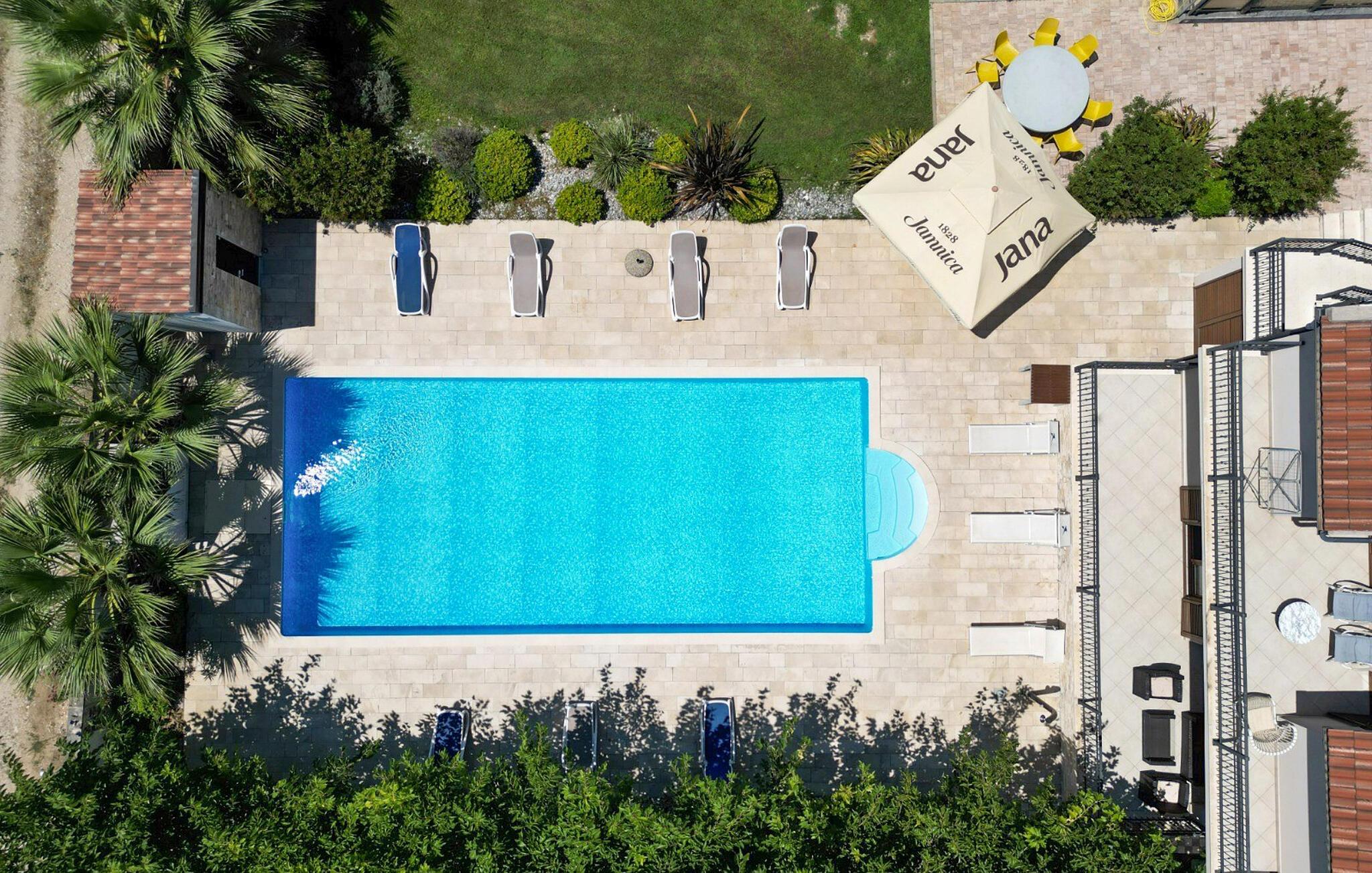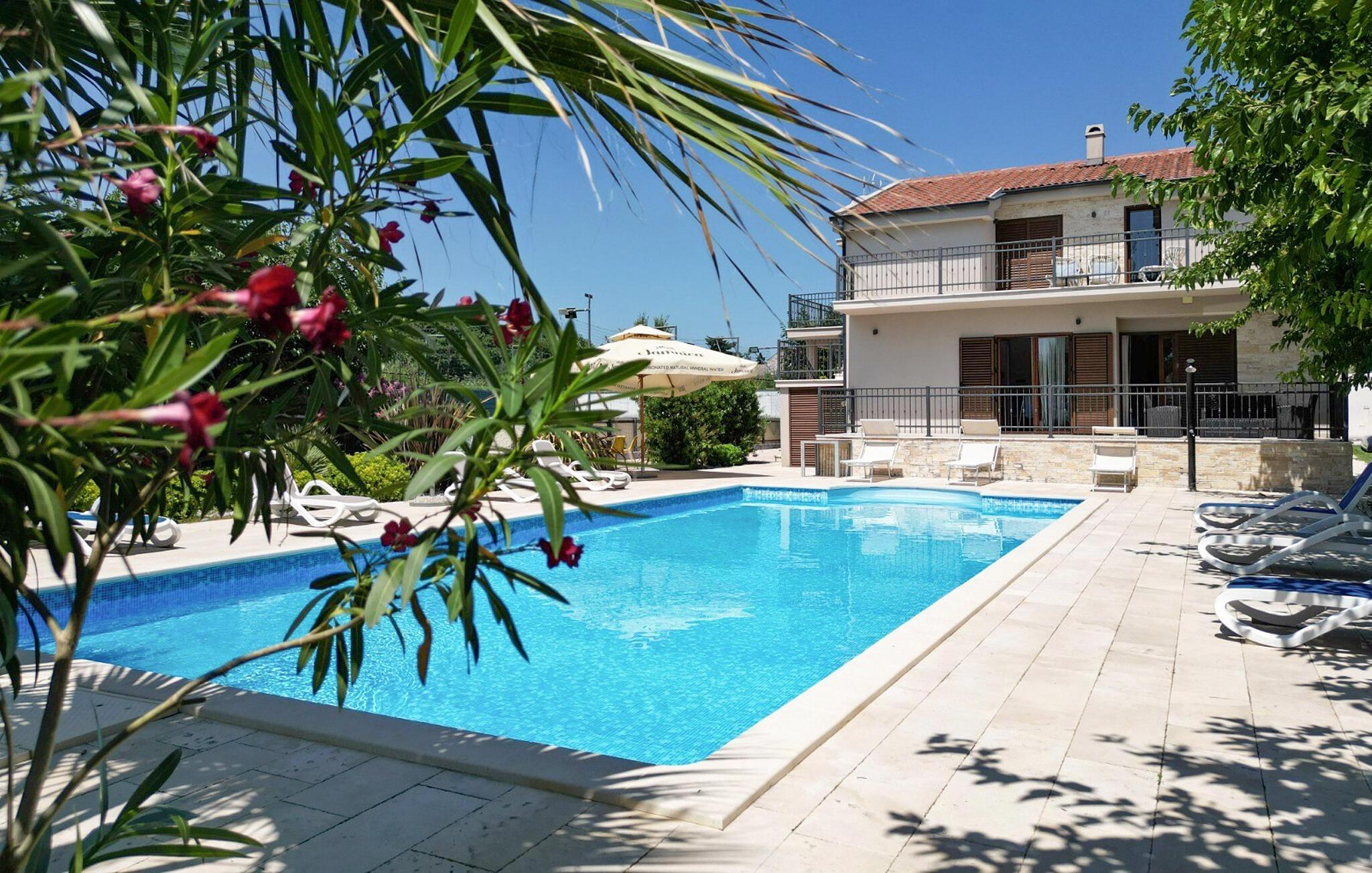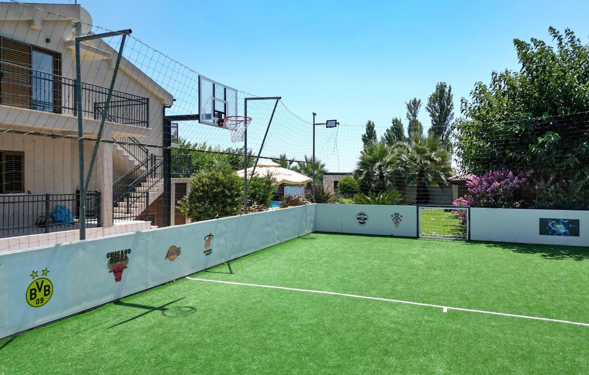 Tilbring en uforglemmelig ferie i dette moderne feriehus med pool og sauna. Den luksuriøse Villa Tona ligger i et roligt område ikke langt fra Zadar og forkæler jer med adskillige ekstrafunktioner, der vil gøre en ferie med familie eller venner til en uforglemmelig oplevelse. Lad jer betage af det elegante interiør af høj kvalitet, og glæd jer til hyggelige madlavningsaftener og muntre måltider i en sofistikeret og stilfuld atmosfære. Forkæl jer selv med afslappende øjeblikke i saunaen, mens andre nyder PlayStation, poolbord, dartskive eller bordfodboldbord. Villa Tona har to fuldt udstyrede køkkener, to spisestuer og to stuer. Den store ejendom omfatter en smukt anlagt have med grill, hvor I kan nyde frisktilberedte måltider med familien. snup en frisk dukkert i den store pool som det første om morgenen, og slap af på en liggestol. Et andet højdepunkt for sportsentusiaster er kunstgræsfodboldbanen. Udforsk den imponerende gamle bydel i Zadar med dens romerske ruiner, det berømte Havorgel og "Hilsen til Solen". Tag en bådtur til de nærliggende øer Ugljan og Pašman eller oplev de turkisblå bugter i Kornati Nationalpark. Udforsk kysten i kajak, tag en vandretur i Velebit Naturpark eller tag en cykeltur gennem Ravni Kotari's idylliske landskab. Prøv frisk fisk og skaldyr i traditionelle taverner, besøg lokale markeder og nyd vinsmagninger på regionens vingårde.