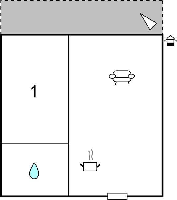 Opholdsstue/køkken - 1 Soveplads. (Sofa, madras eller lignende).