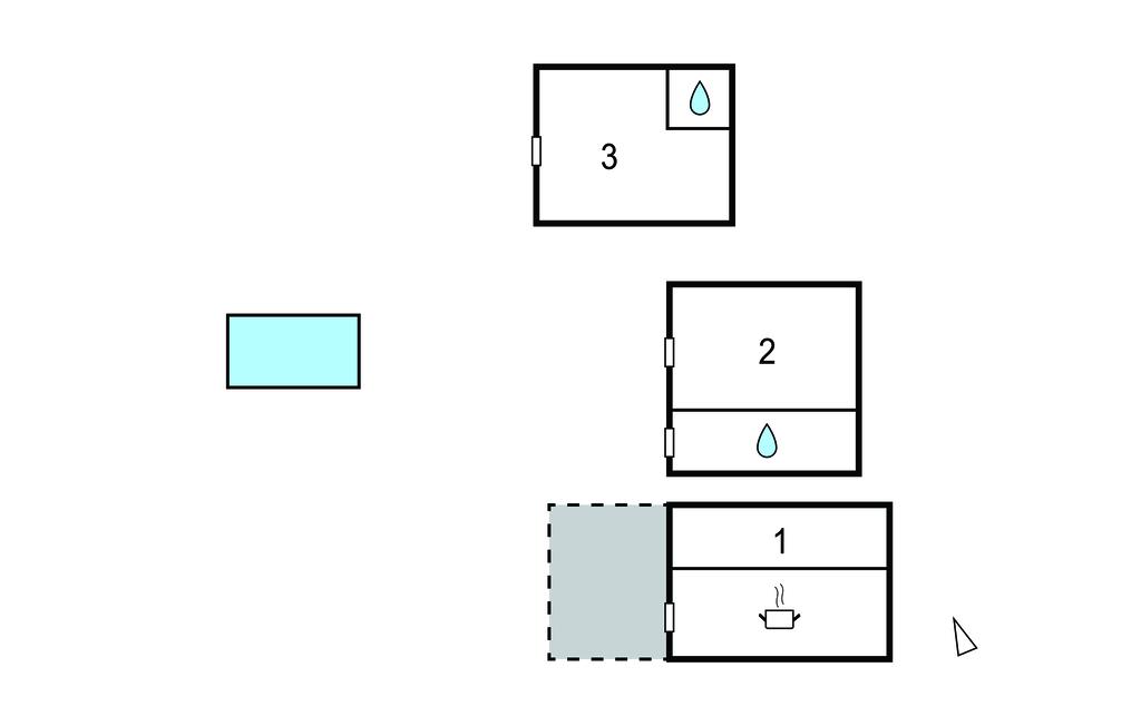 Badeværelse 5m2 (nr. 1) - WC. Varmt og koldt vand. Bruser